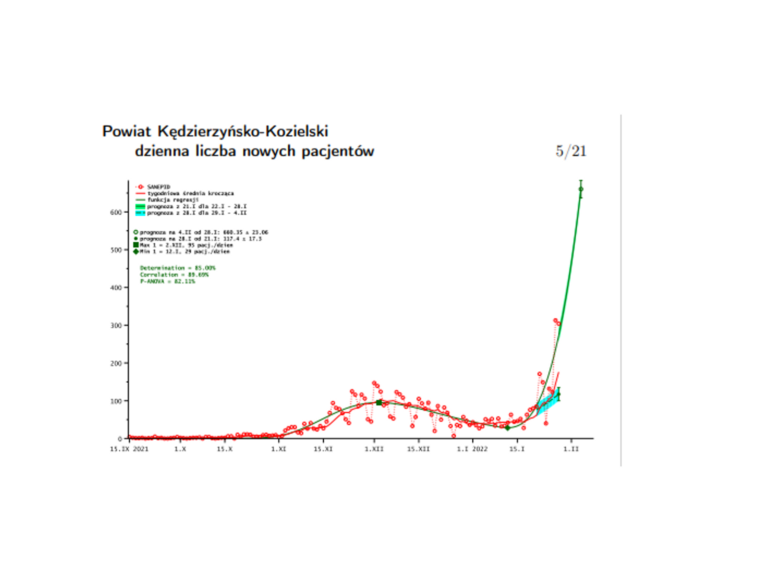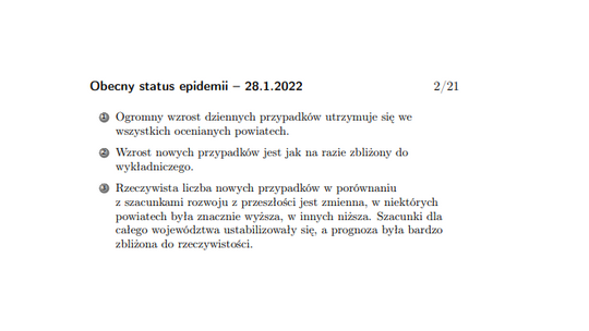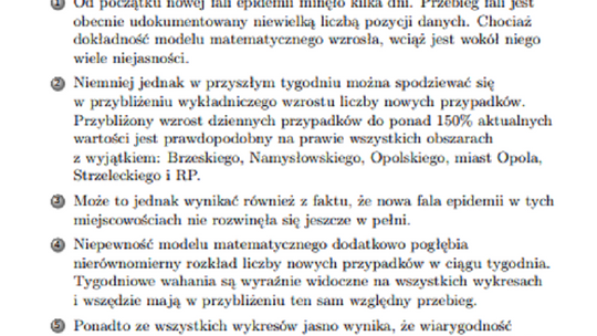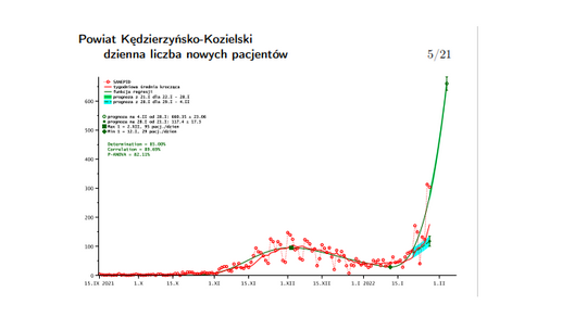 W opublikowanych przez nasze starostwo powiatowe fragmentach prognozy prof. Barton prezentuje w formie graficznej, jak w okresie od września 2021 r. do teraz kształtowała się dzienna liczba nowych przypadków zakażeń wśród mieszkańców powiatu kędzierzyńsko-kozielskiego. Z wykresem i wnioskami płynącymi z badań można się zapoznać, oglądając załączniki.