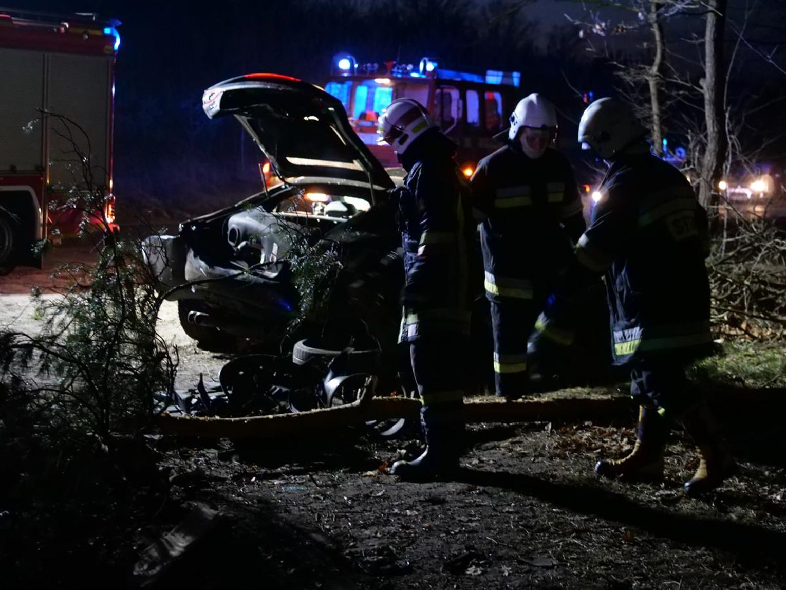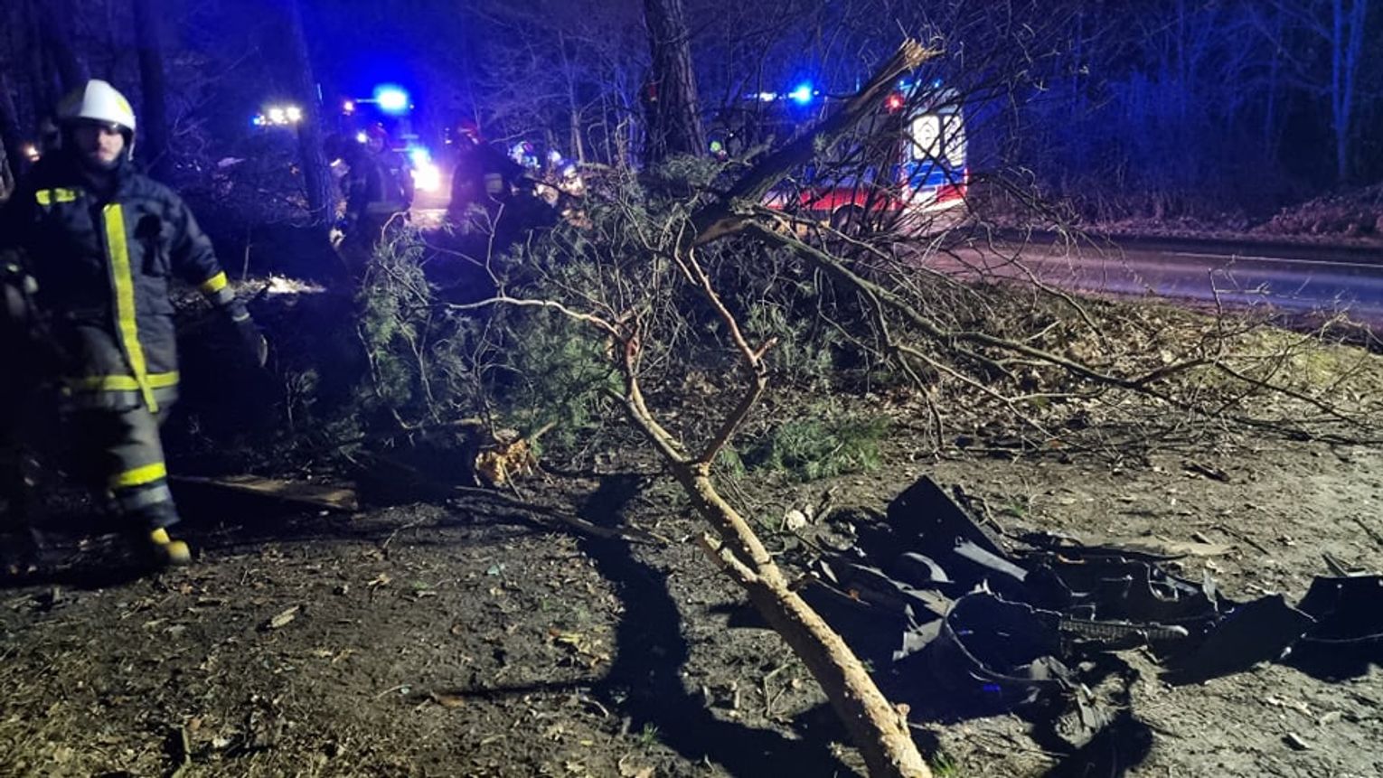Jak udało się ustalić, 60-letni kierowca sportowego jaguara jadąc w kierunku Kędzierzyna-Koźla z niewyjaśnionych przyczyn wypadł z drogi, ścinając dwa drzewa. Części pojazdu rozrzucone były na kilkanaście metrów. Na szczęście mężczyźnie nie stało się nic poważnego. Został przetransportowany do szpitala. Na czas prowadzonych działań ruch w tym miejscu odbywał się wahadłowo. Policjanci pracujący na miejscu ustalają szczegółowe okoliczności tego zdarzenia, które miało miejsce w sobotę, 12 lutego chwilę po godzinie 17.