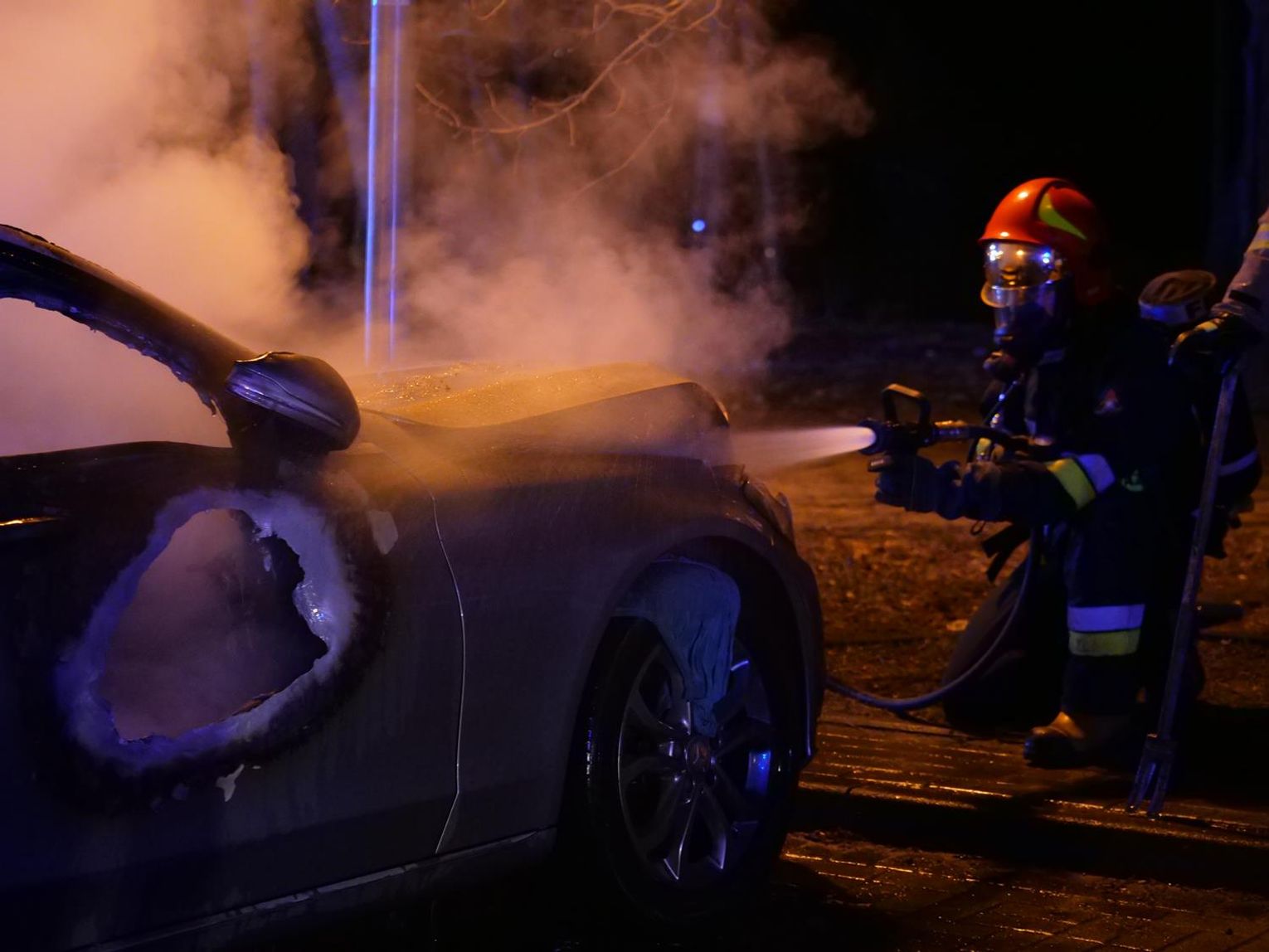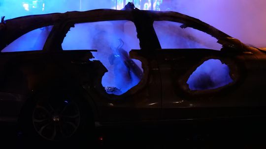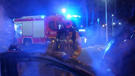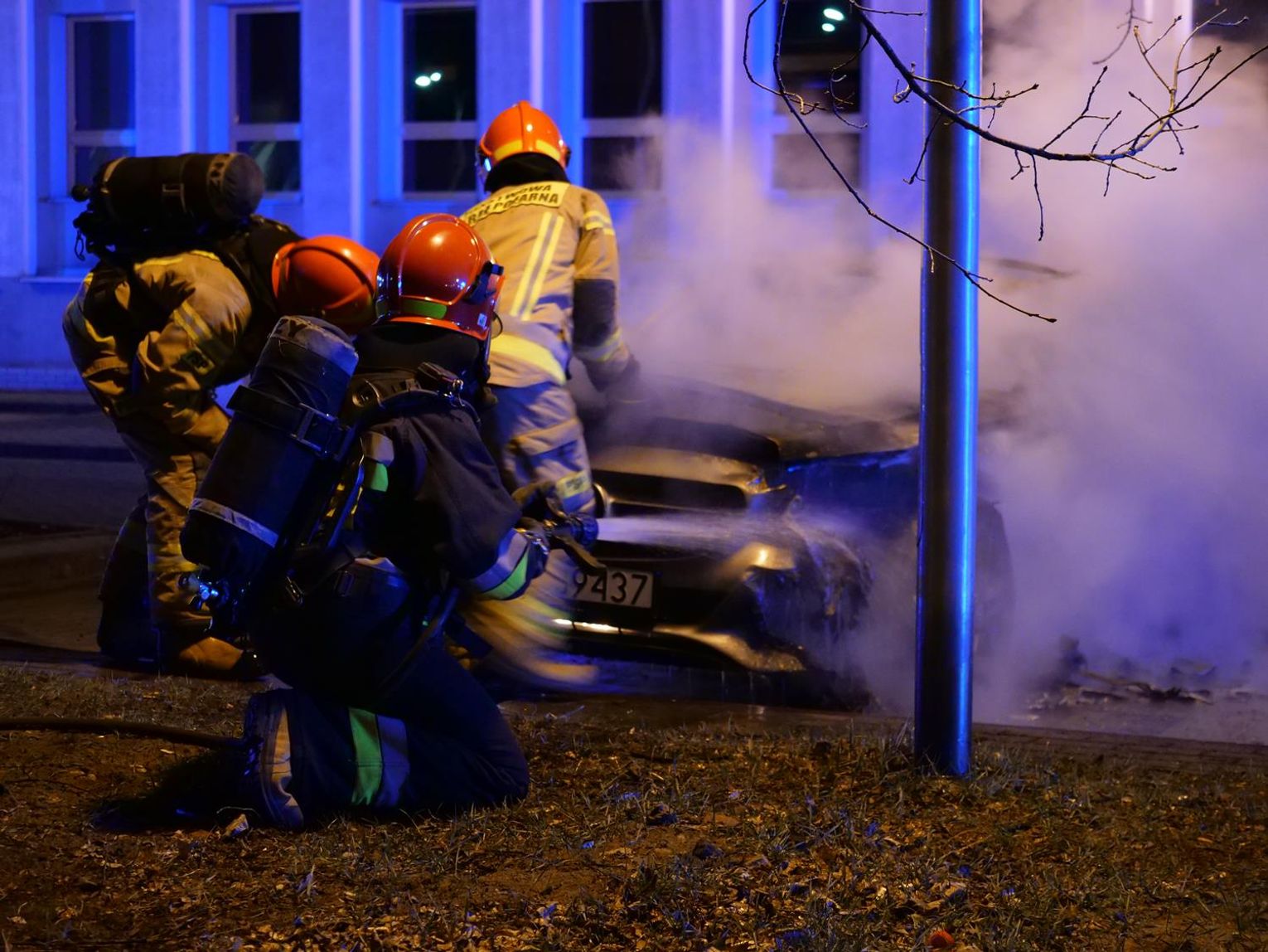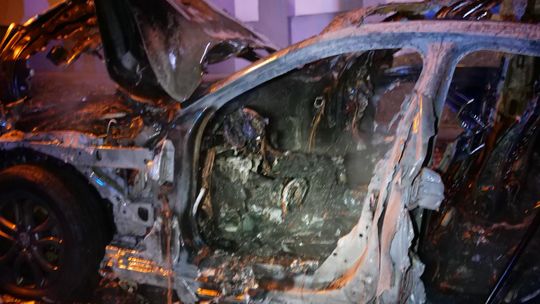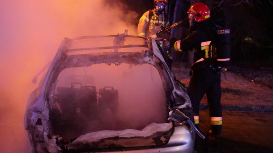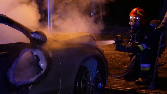 Nocny pożar samochodu. Mercedes spłonął doszczętnie