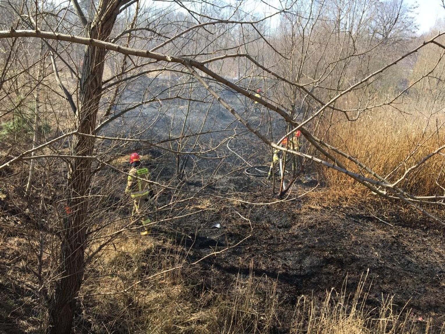Dym widoczny był z daleka. Zgłoszenie do dyżurnego Komendy Powiatowej Państwowej Straży Pożarnej w Kędzierzynie-Koźlu wpłynęło w środę, 23 marca kilkanaście minut przed godziną 12. Paliły się suche trawy i krzaki pomiędzy dawnym tartakiem a obwodnicą. Na miejscu interweniowali także policjanci, którzy ustalają, czy nie doszło czasem do celowego podłożenia ognia.