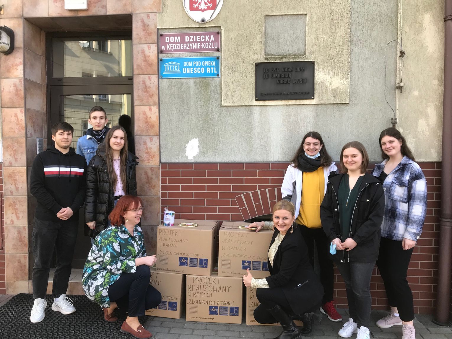 Aleksandra Plaskota, Emilia Malkowski, Anna Frank i Rafał Swoboda - uczniowie I Liceum Ogólnokształcącego im. Henryka Sienkiewicza oraz Dawid Bajdiuk z Zespołu Szkół Technicznych i Ogólnokształcących w ramach olimpiady "Zwolnionych z teorii" zrealizowaliśmy projekt społeczny – zbiórkę charytatywną "Pomoc niesiona pudełkami". Pisaliśmy o tym TUTAJ.