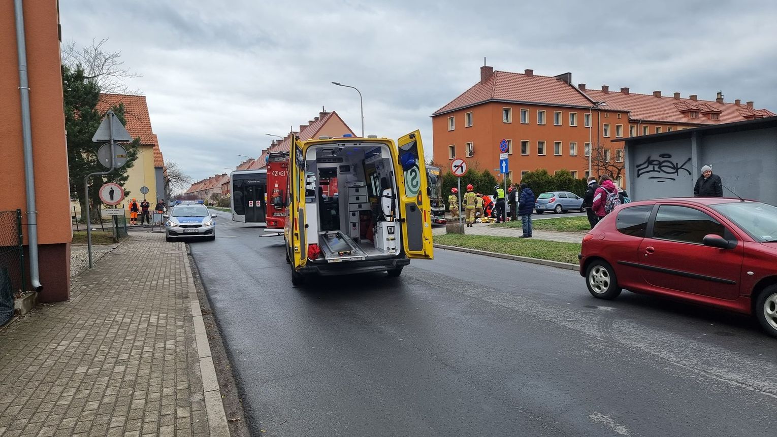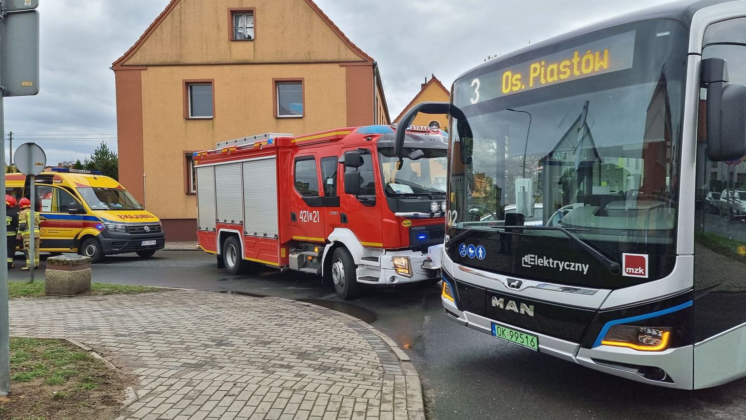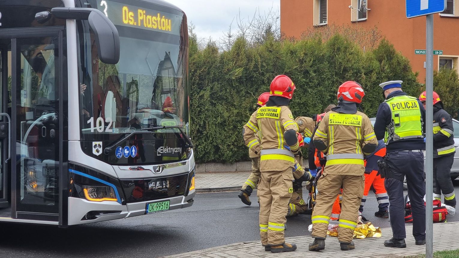 Jak udało się ustalić, autobus skręcał z ulicy Kościuszki w ulicę Moniuszki, gdzie przez jezdnię przechodziła 85-letnia kobieta. Na chwilę obecną nie wiadomo, czy doszło do potrącenia, czy kobieta sama przewróciła się przed pojazdem.