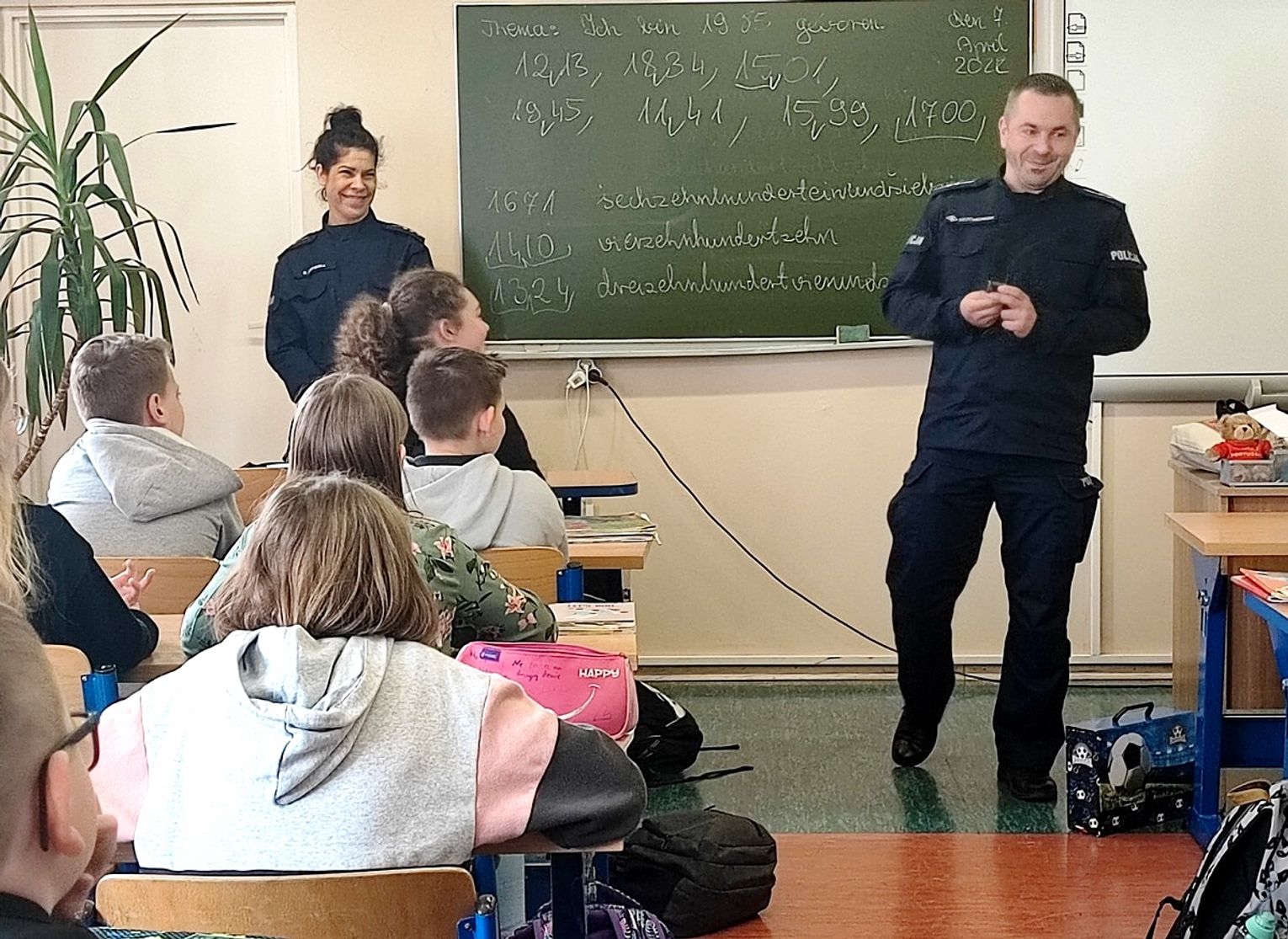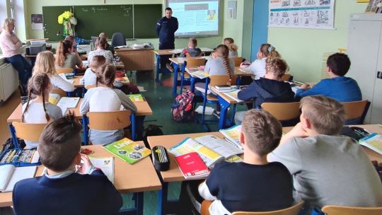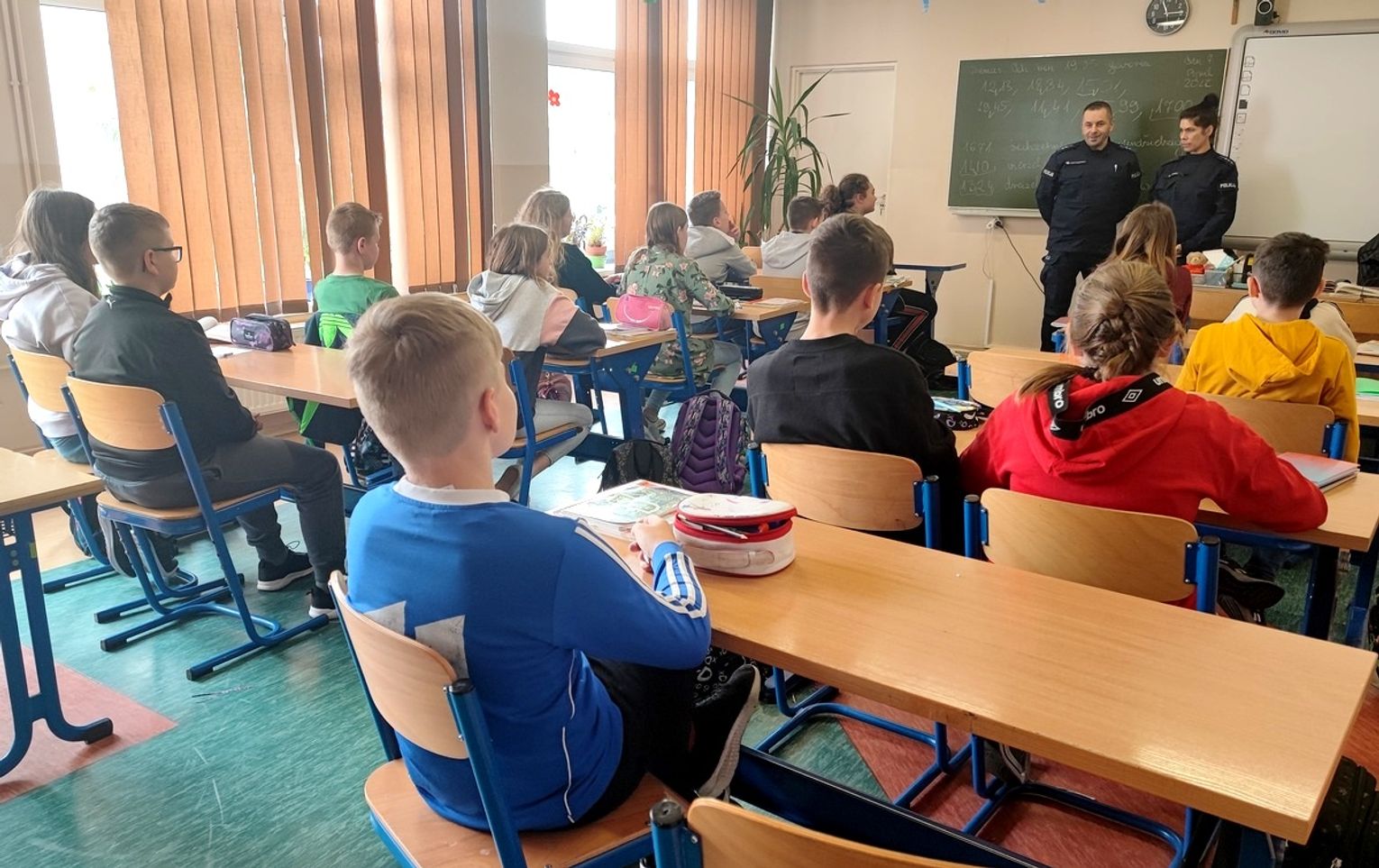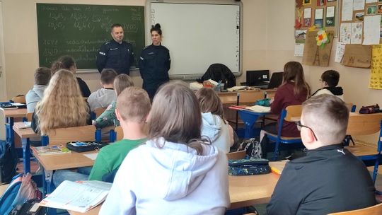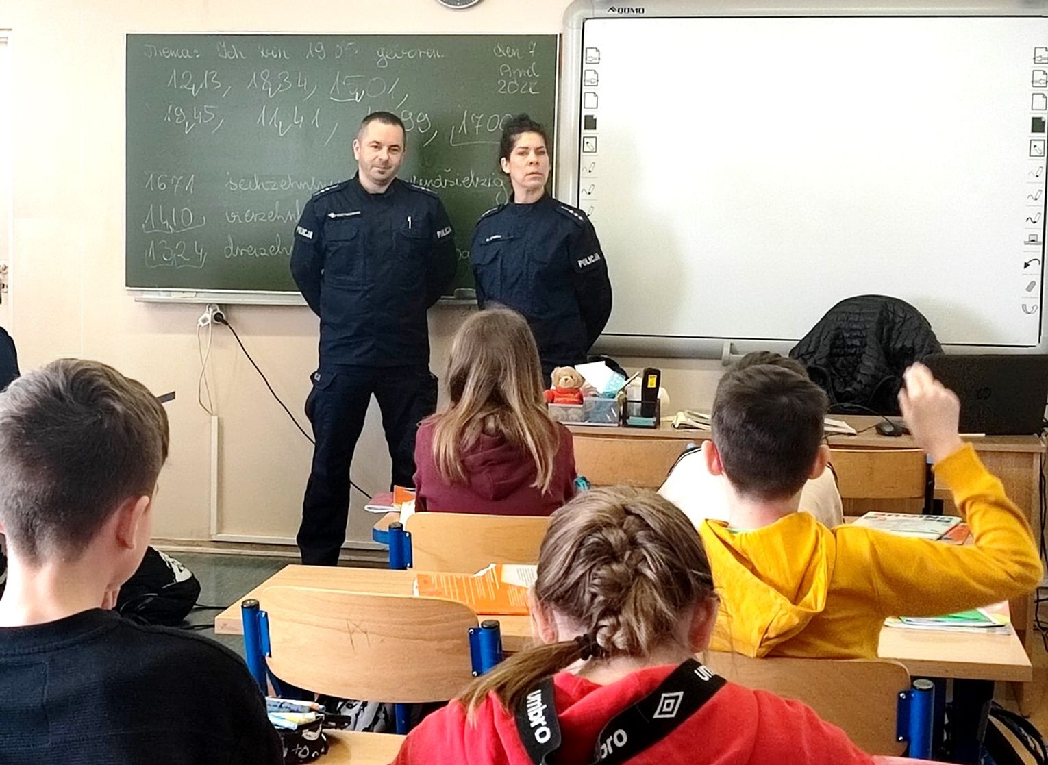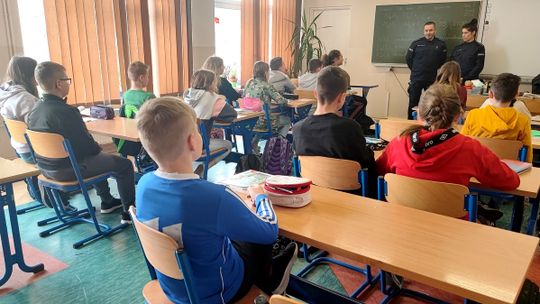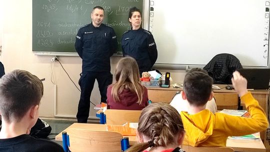 Funkcjonariusze mówili również o wzajemnym szacunku w relacjach z rówieśnikami i osobami dorosłymi. Dzieci aktywnie uczestniczyły w spotkaniu, chętnie dzieliły się zdobytą wiedzą oraz udzielały odpowiedzi na zadawane pytania.