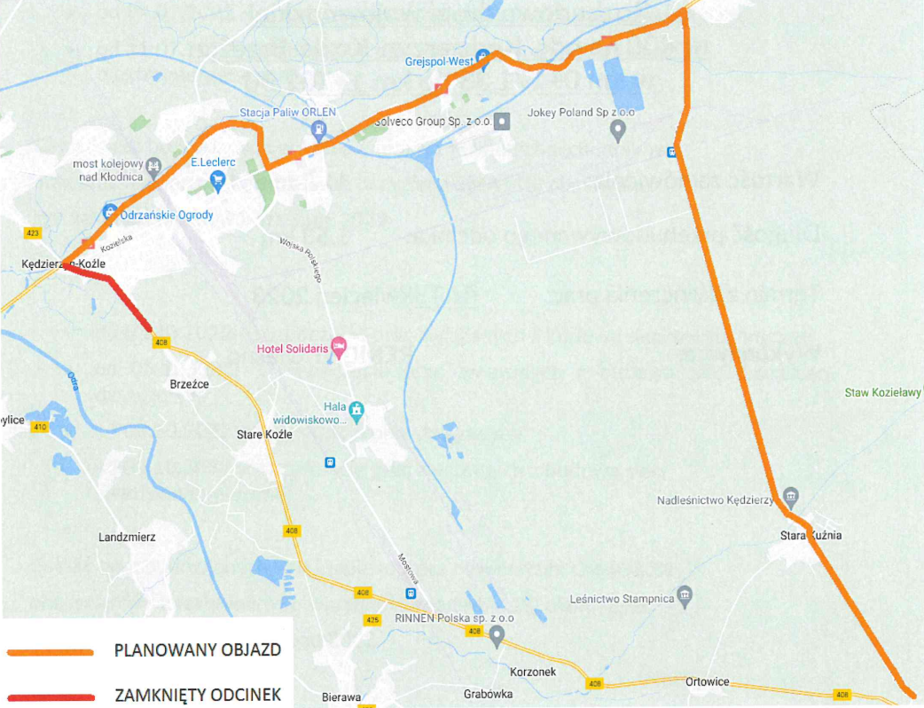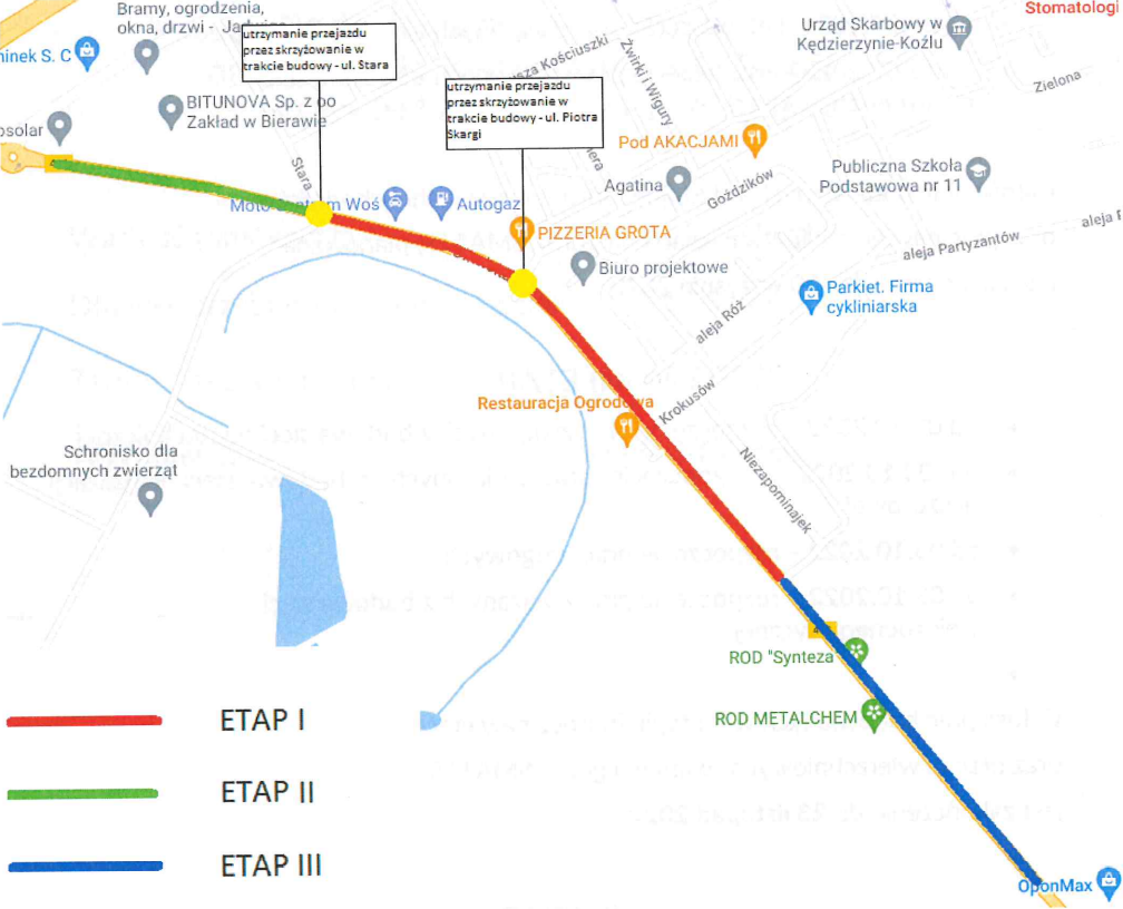 - Etap III - DW 408 odcinek od ul. Niezapominajek do końca opracowania w stronę Starego Koźla - długość ok. 460 m.