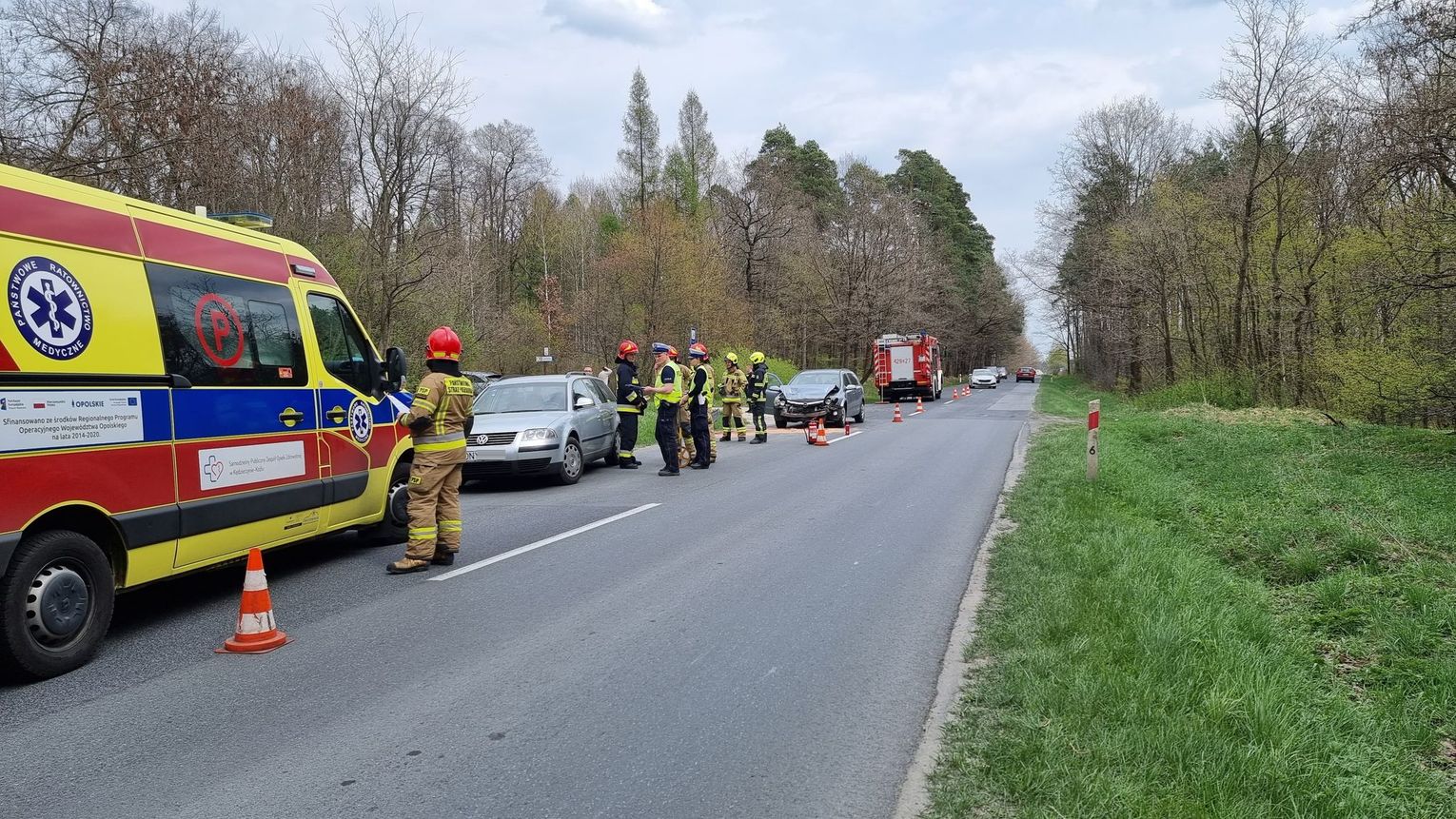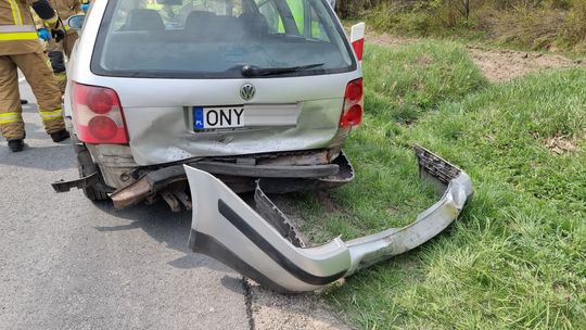 Zdarzenie miało miejsce w niedzielę, 1 maja około godziny 14. Ze wstępnych ustaleń wynika, że kierujący oplem na kędzierzyńsko-kozielskich tablicach rejestracyjnych schylił się, aby podnieść coś z podłogi samochodu i nagle uderzył w poprzedzającego go volkswagena na nyskich tablicach rejestracyjnych. W wyniku zderzenia ranny został kierowca passata, który trafił do szpitala. Jego pasażerka nie wymagała pomocy medycznej. Policjanci pracujący na miejscu ustalają szczegółowe okoliczności zdarzenia. Na czas prowadzonych działań ruch w tym miejscu odbywał się wahadłowo.