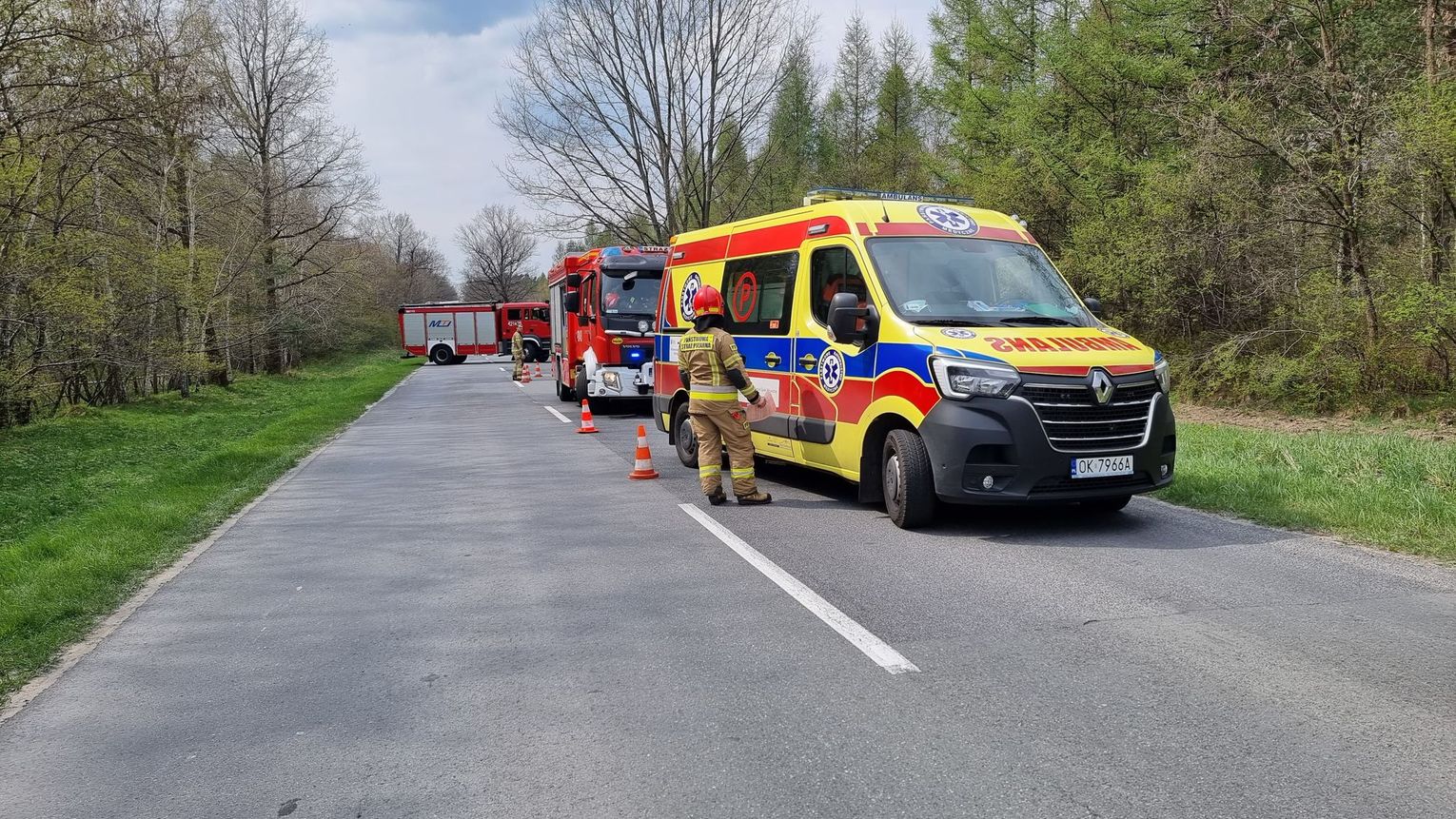 Kilka zastępów straży pożarnej, zespół ratownictwa medycznego oraz patrol policji interweniowali na drodze wojewódzkiej nr 408 pomiędzy Goszycami a Kotlarnią.