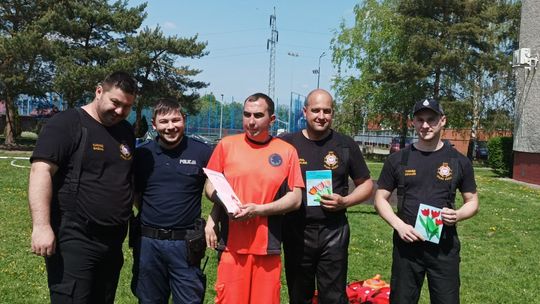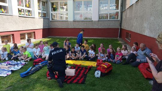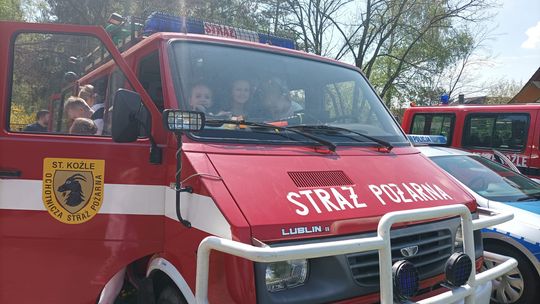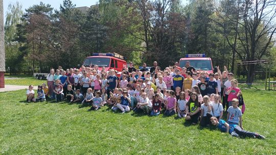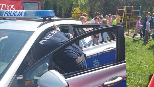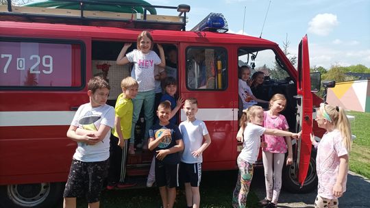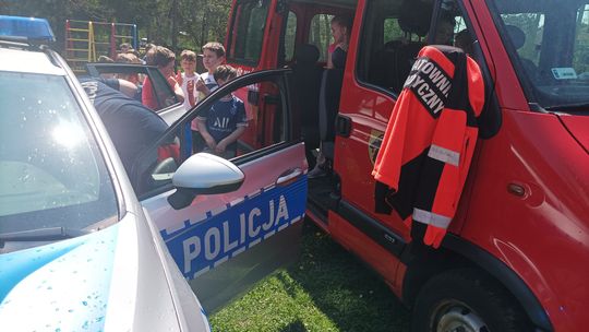 Ponadto uczniowie obejrzeli radiowóz i wozy strażackie. Na koniec podziękowali mundurowym laurkami i gromkimi brawami.
