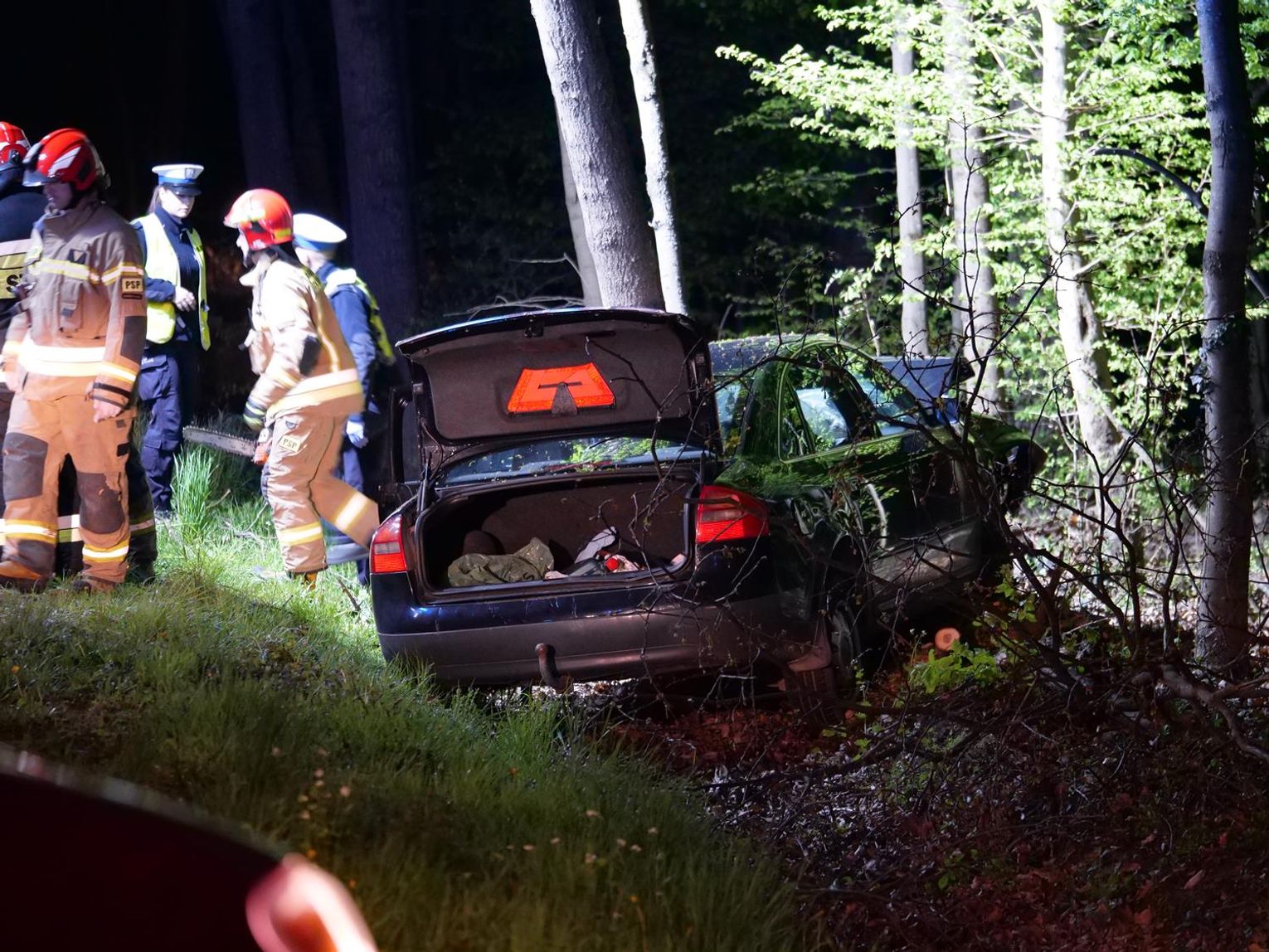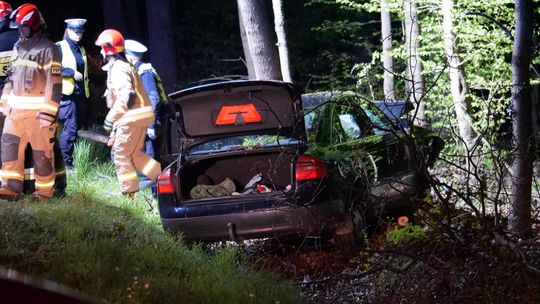 Zgłoszenie do operatora numeru alarmowego wpłynęło w piątek, 6 maja przed godziną 21. Audi na kędzierzyńsko-kozielskich tablicach rejestracyjnych rozbiło się na drzewie. Kierowca uciekł do lasu. Strażacy oraz policjanci przeszukali pobliski teren. Zarówno w pojeździe, jak i w okolicy nie znaleziono śladów krwi. Nie wiadomo w jakim stanie był kierowca. Na czas prowadzonych działań droga została wyłączona z ruchu. Policjanci pracujący na miejscu ustalają szczegółowe okoliczności zdarzenia.