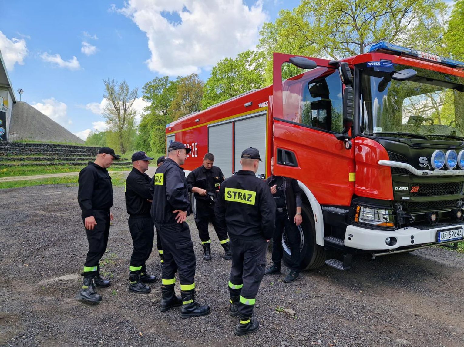 Strażacy kierowcy z Jednostki Ratowniczo-Gaśniczej nr 2 Państwowej Straży Pożarnej w Kędzierzynie-Koźlu szkolili się z obsługi i jazdy w trudnym terenie nowym samochodem Scania.