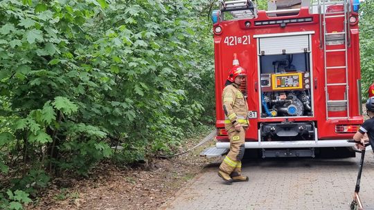 Dwa zastępy straży pożarnej interweniowały w lesie za krytą pływalnią przy al. Jana Pawła II. Pracownicy Miejskiego Ośrodka Sportu i Rekreacji zauważyli dym.