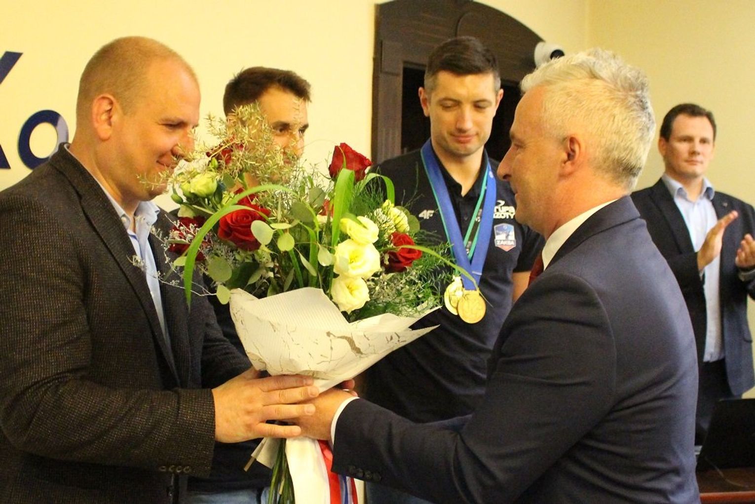 Gratulacje powędrowały do przedstawicieli Grupa Azoty ZAKSA Kędzierzyn-Koźle - zdobywcy tytułów mistrza Polski Pucharu Polski i Ligi Mistrzów.
