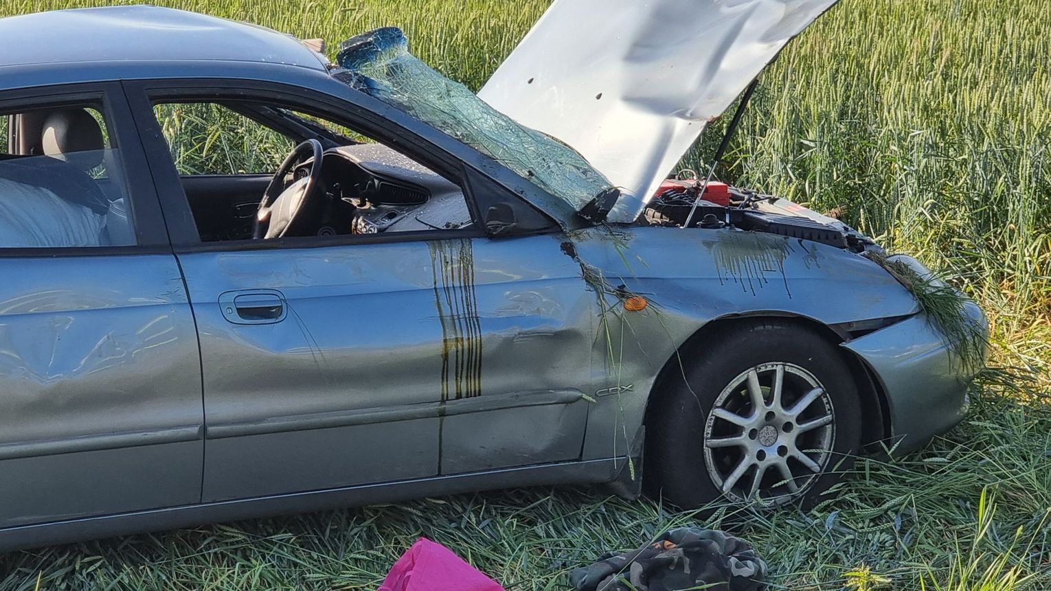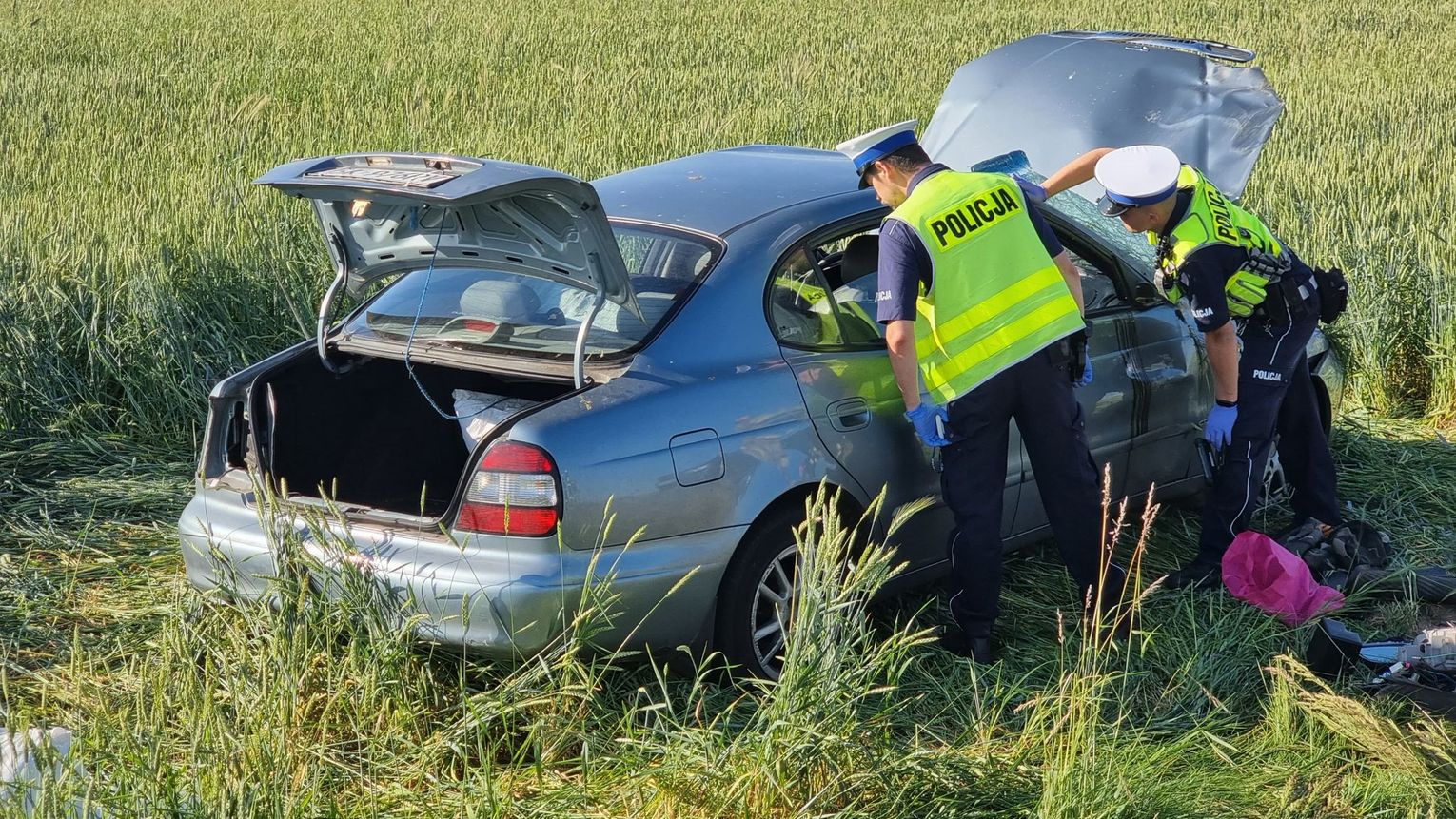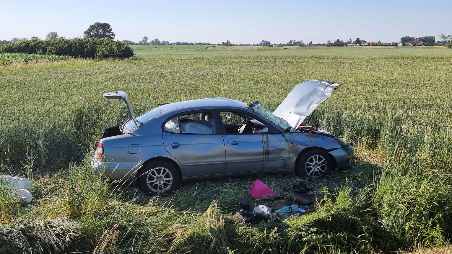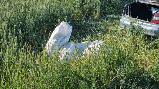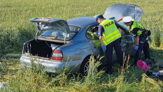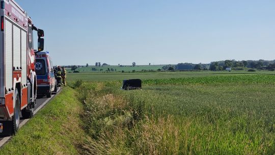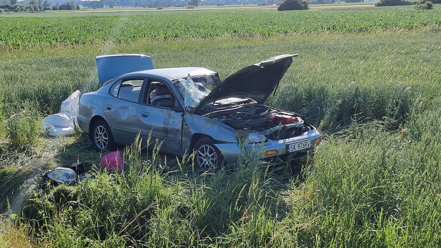 Zgłoszenie do operatora numeru alarmowego wpłynęło w sobotę, 18 czerwca kilka minut po godzinie 17. Jak udało się ustalić, osobowe daewo na śląskich tablicach rejestracyjnych jechało w kierunku Cisku. Po przyjeździe służb na miejsce pojazd leżał na boku w polu. Samochodem podróżowało dwóch mężczyzn - obaj byli nietrzeźwi. Wymagali hospitalizacji. W pojeździe znajdowało się kilkanaście worków z tytoniem. Na miejsce wezwano policyjnych techników. Policjanci pracujący na miejscu ustalają szczegółowe okoliczności zdarzenia. Na czas prowadzonych działań droga zastała całkowicie zablokowana.