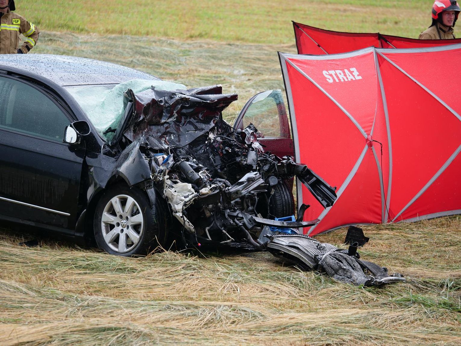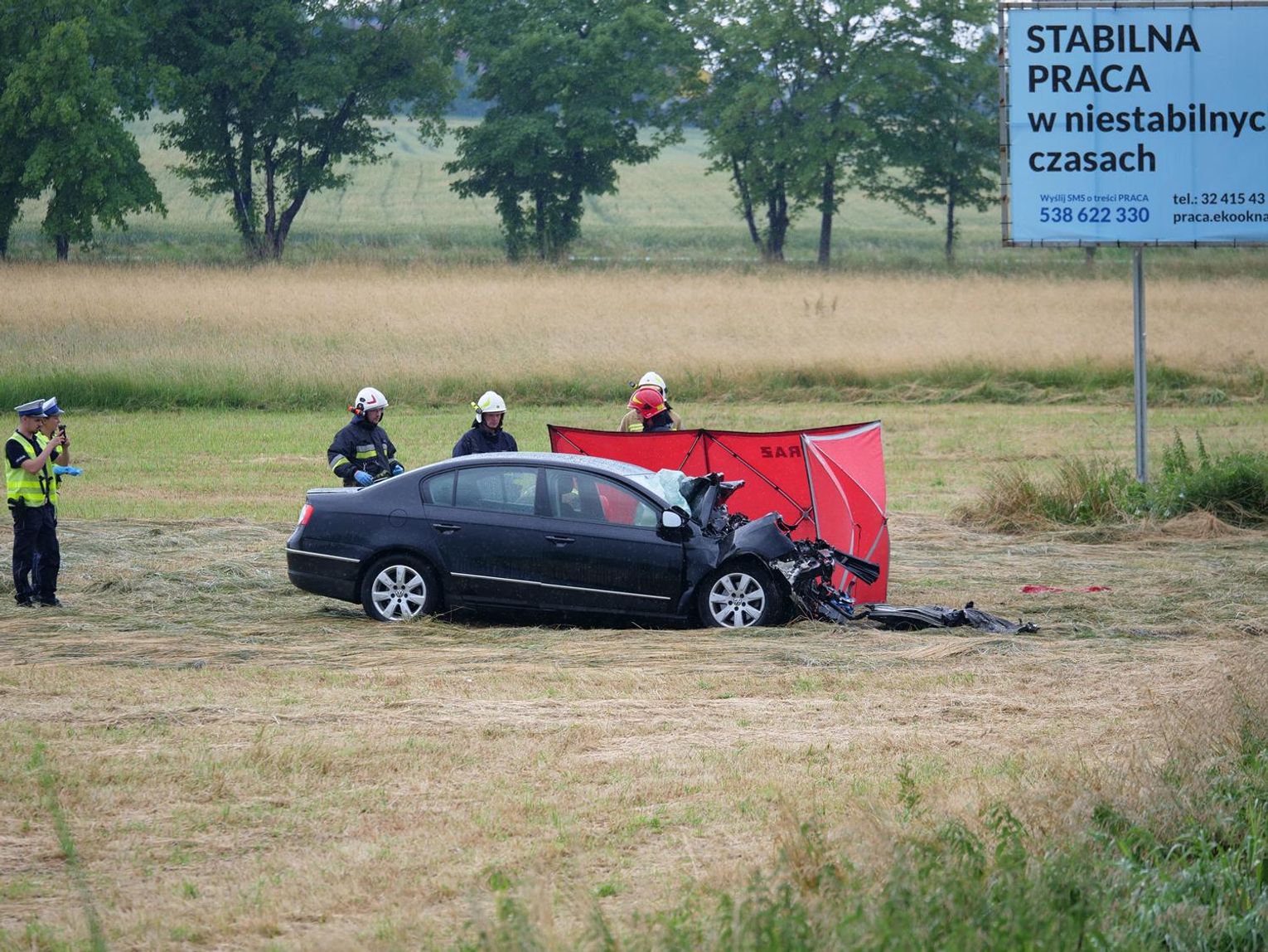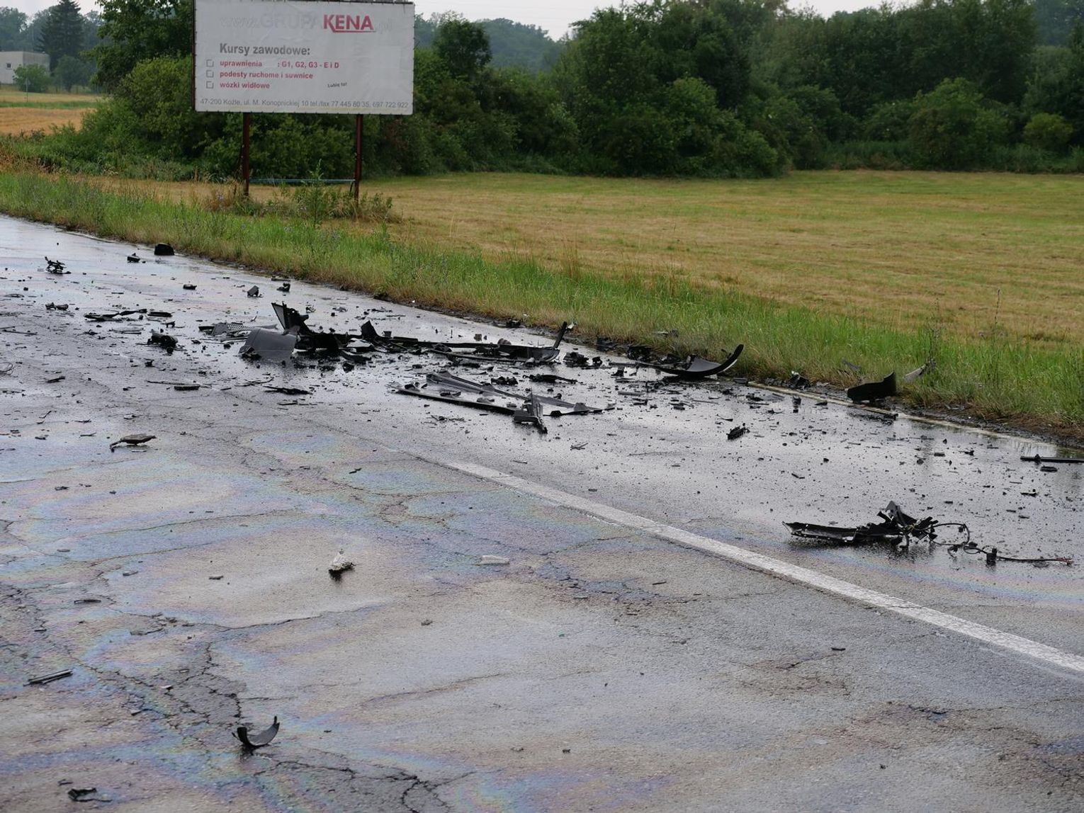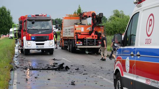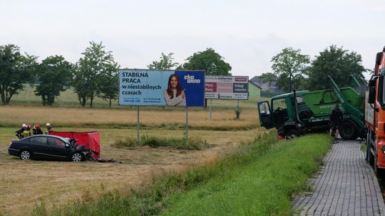 Na miejsce zadysponowano wszystkie służby ratunkowe. Droga została całkowicie zablokowana na kilka godzin. Jak udało się ustalić, 72-letni kierowca volkswagena - mieszkaniec Kędzierzyna-Koźla jechał od strony Większyc w kierunku Koźla. Z niewyjaśnionych przyczyn zjechał na przeciwległy pas ruchu i czołowo zderzył się z jadącym z naprzeciwka ciężarowym Manem, prowadzonym przez 37-latka - mieszkańca gminy Reńska Wieś. W wyniku zderzenia osobówka została odrzucona na kilkanaście metrów w pole. Kierowca volkswagena zmarł na miejscu.