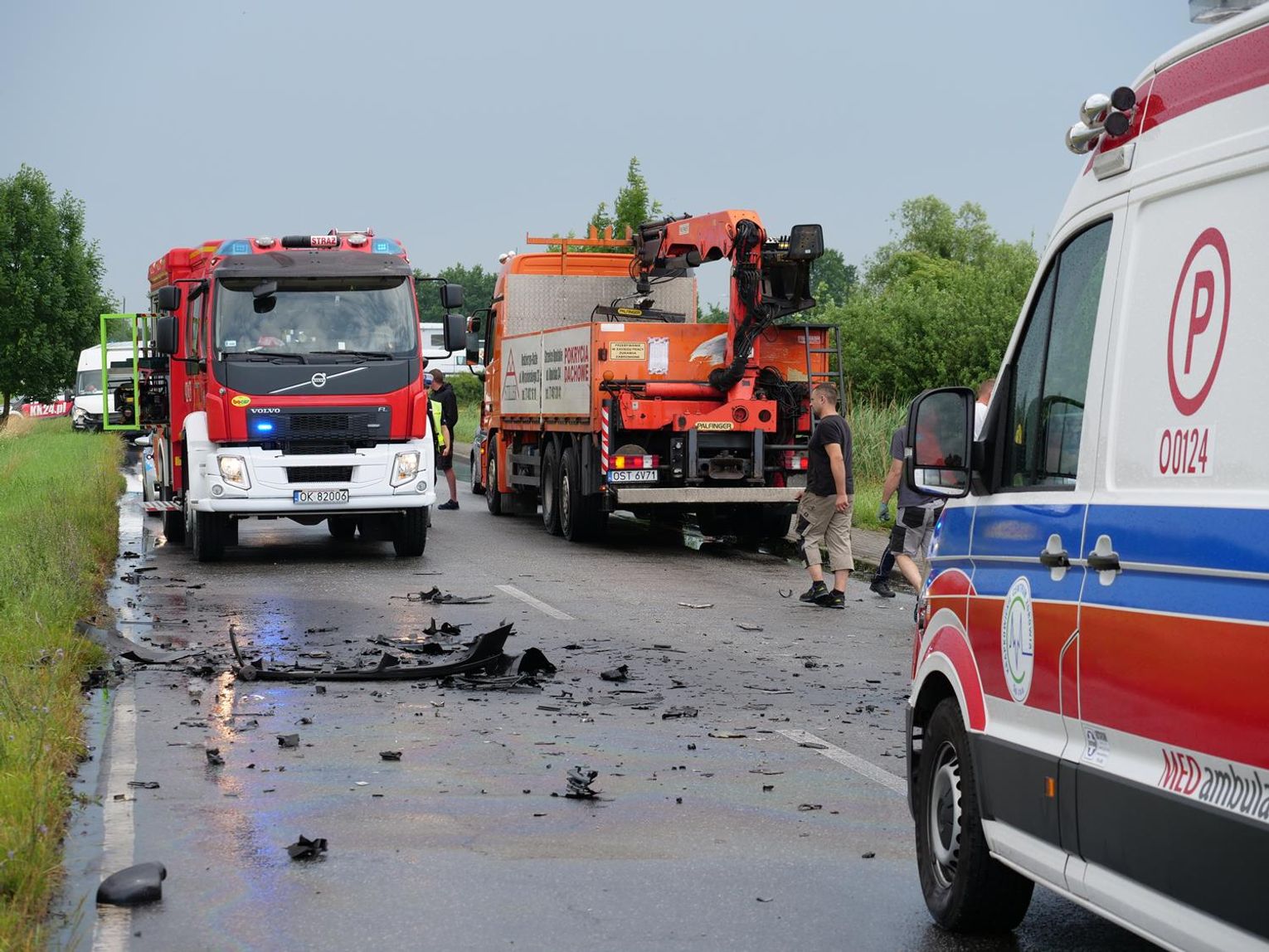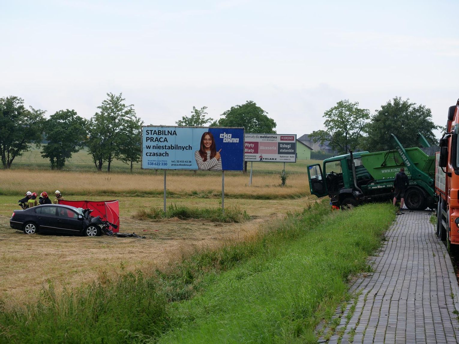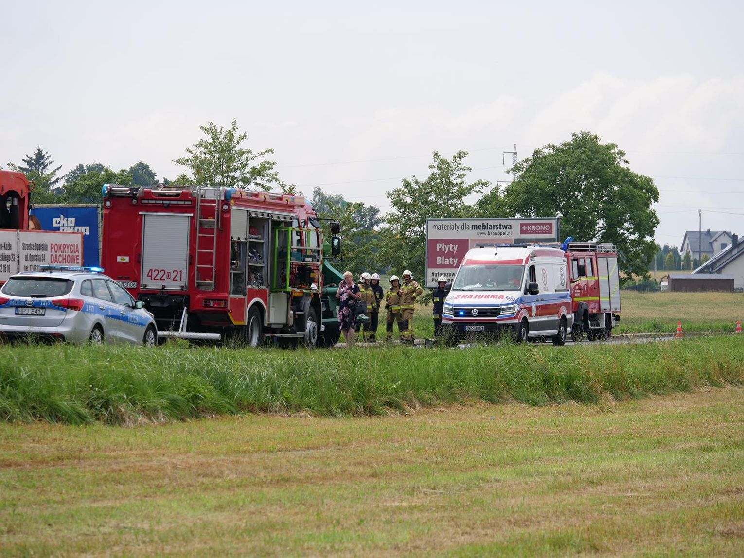 Na miejsce zadysponowano wszystkie służby ratunkowe. Droga została całkowicie zablokowana na kilka godzin. Jak udało się ustalić, 72-letni kierowca volkswagena - mieszkaniec Kędzierzyna-Koźla jechał od strony Większyc w kierunku Koźla. Z niewyjaśnionych przyczyn zjechał na przeciwległy pas ruchu i czołowo zderzył się z jadącym z naprzeciwka ciężarowym Manem, prowadzonym przez 37-latka - mieszkańca gminy Reńska Wieś. W wyniku zderzenia osobówka została odrzucona na kilkanaście metrów w pole. Kierowca volkswagena zmarł na miejscu.