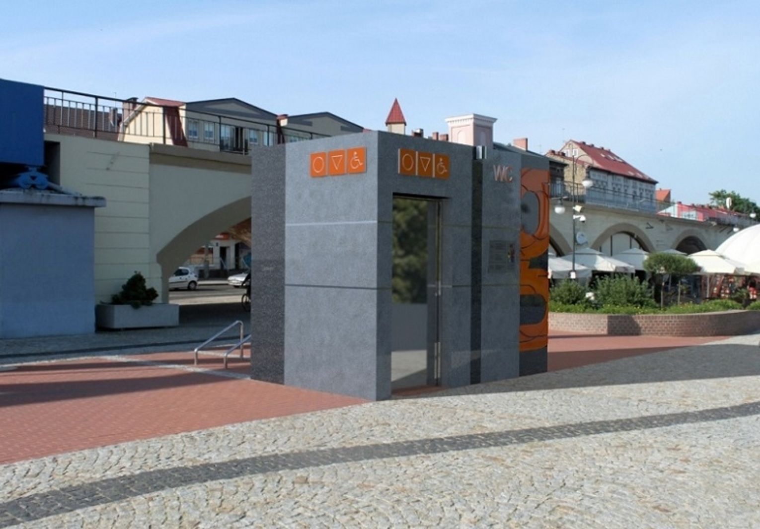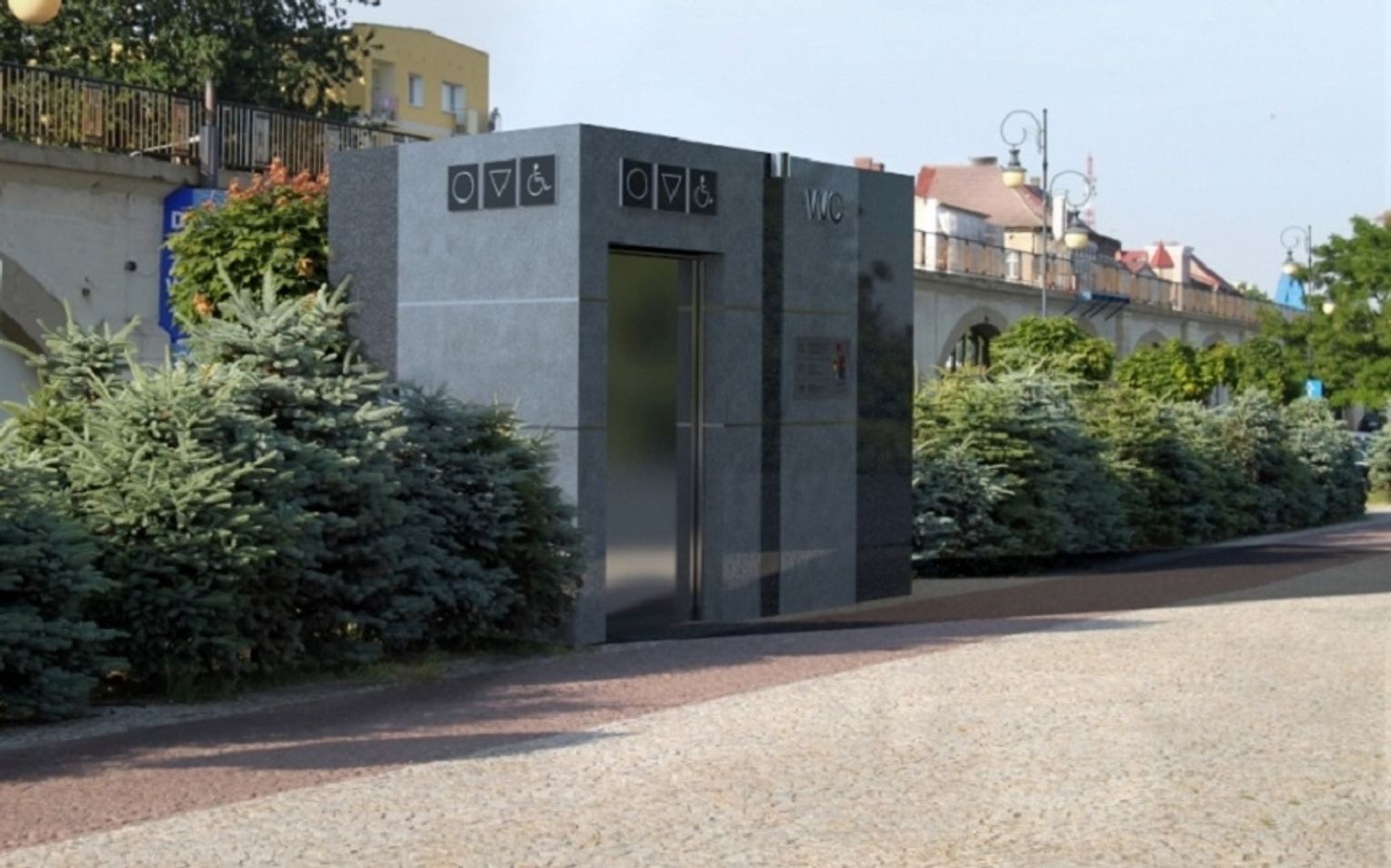 Poniżej zamieszczamy fotogalerię z miejsca gdzie planuje się reaktywację wychodków oraz przykładowe wizualizacje szaletów miejskich zaprojektowane przez jednego z producentów - firmę GIGANT.