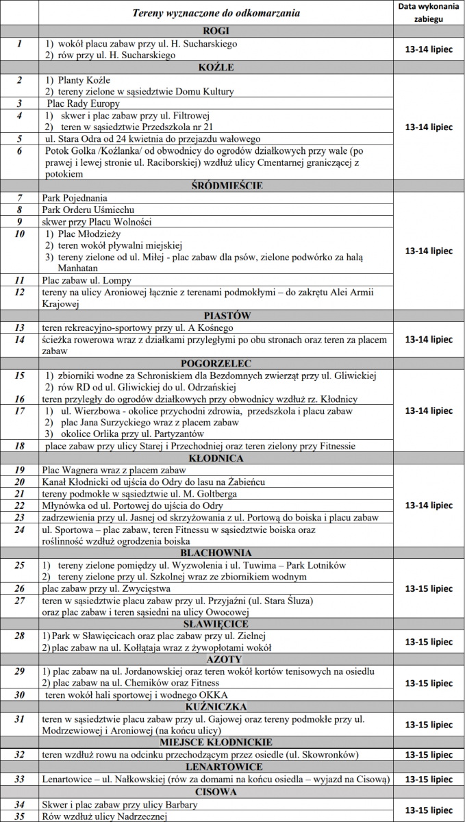Odkomarzanie zostało zlecone specjalistycznej firmie, która używa wyłącznie bezpiecznych dla zdrowia preparatów. Zabiegi będą prowadzone jedynie w nocy, aby przede wszystkim nie ucierpiały pszczoły. Akcja obejmie ponad 40 lokalizacji, takich jak parki, skwery, place zabaw.