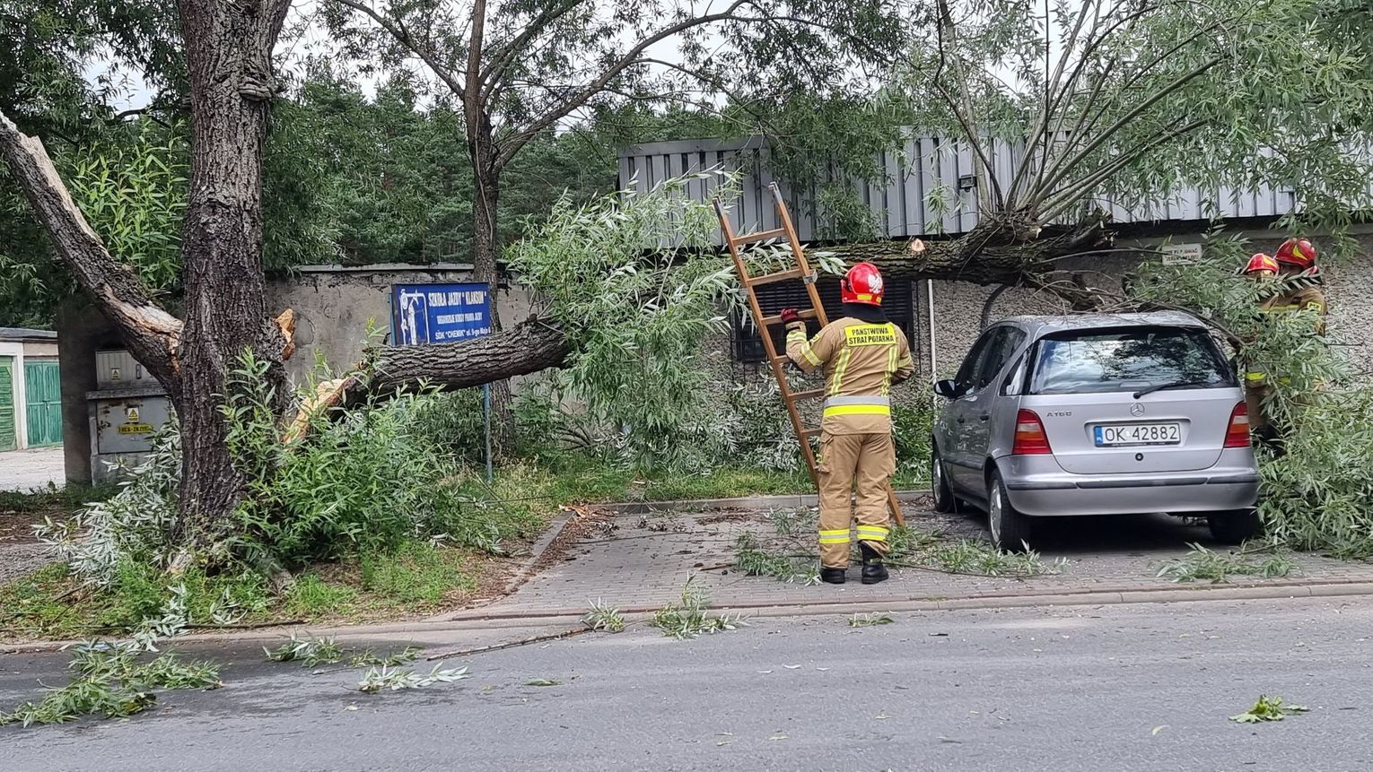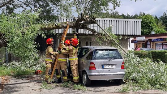 Zastęp straży pożarnej oraz patrol policji interweniowali przy skrzyżowaniu ulicy Harcerskiej z 9 Maja, gdzie na zaparkowany samochód spadł konar.