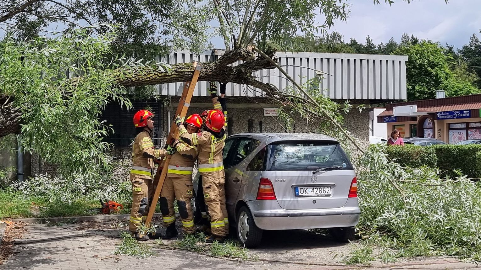 Stare drzewo złamało się, a konar spadł na zaparkowanego mercedesa wgniatając dach pojazdu. Na szczęście właścicielka samochodu była akurat w sklepie. Nikomu nic się nie stało. Strażacy zabezpieczyli zwisający konar, przestawili pojazd w bezpieczne miejsce i odcięli gałęzie, które zagrażały zarówno pojazdom, jak i przechodniom. Zdarzenie miało miejsce w poniedziałek, 11 lipca około godziny 13.30.