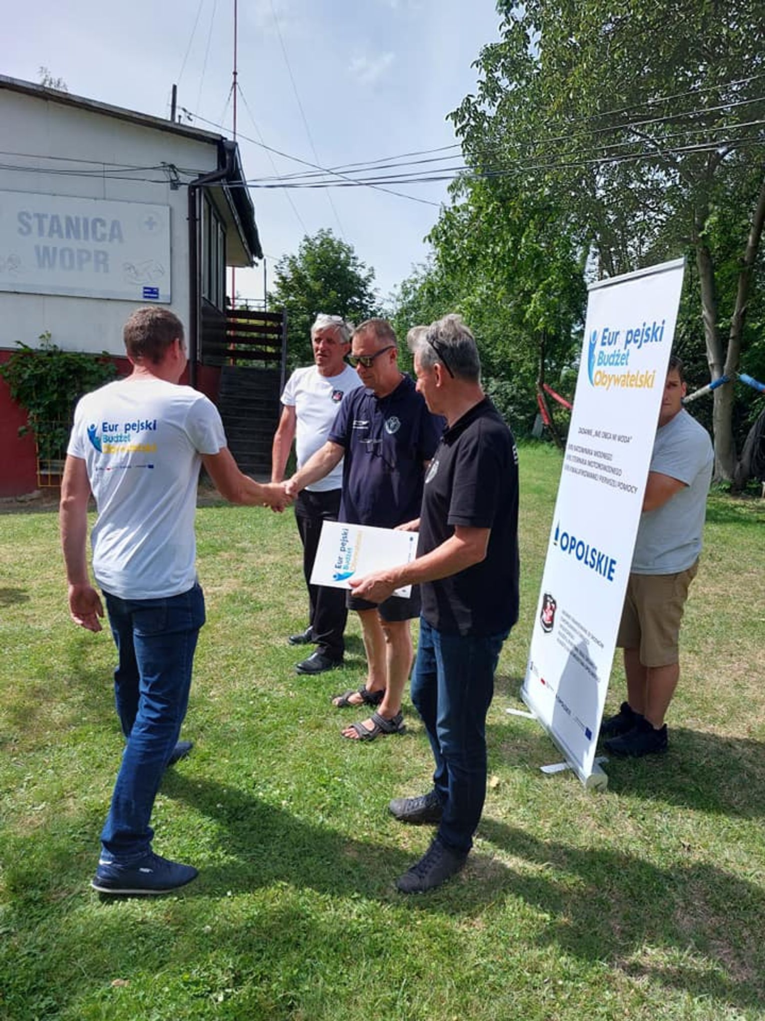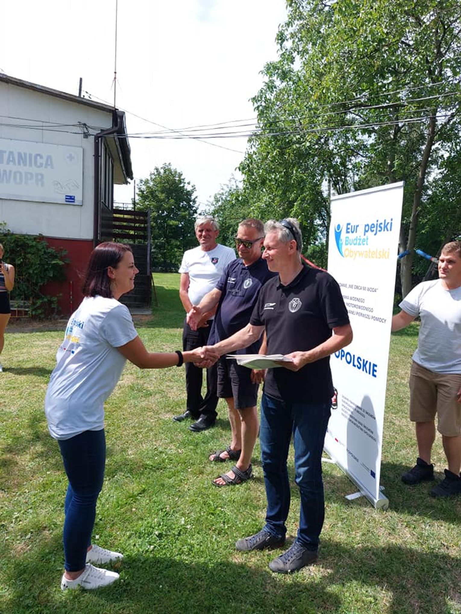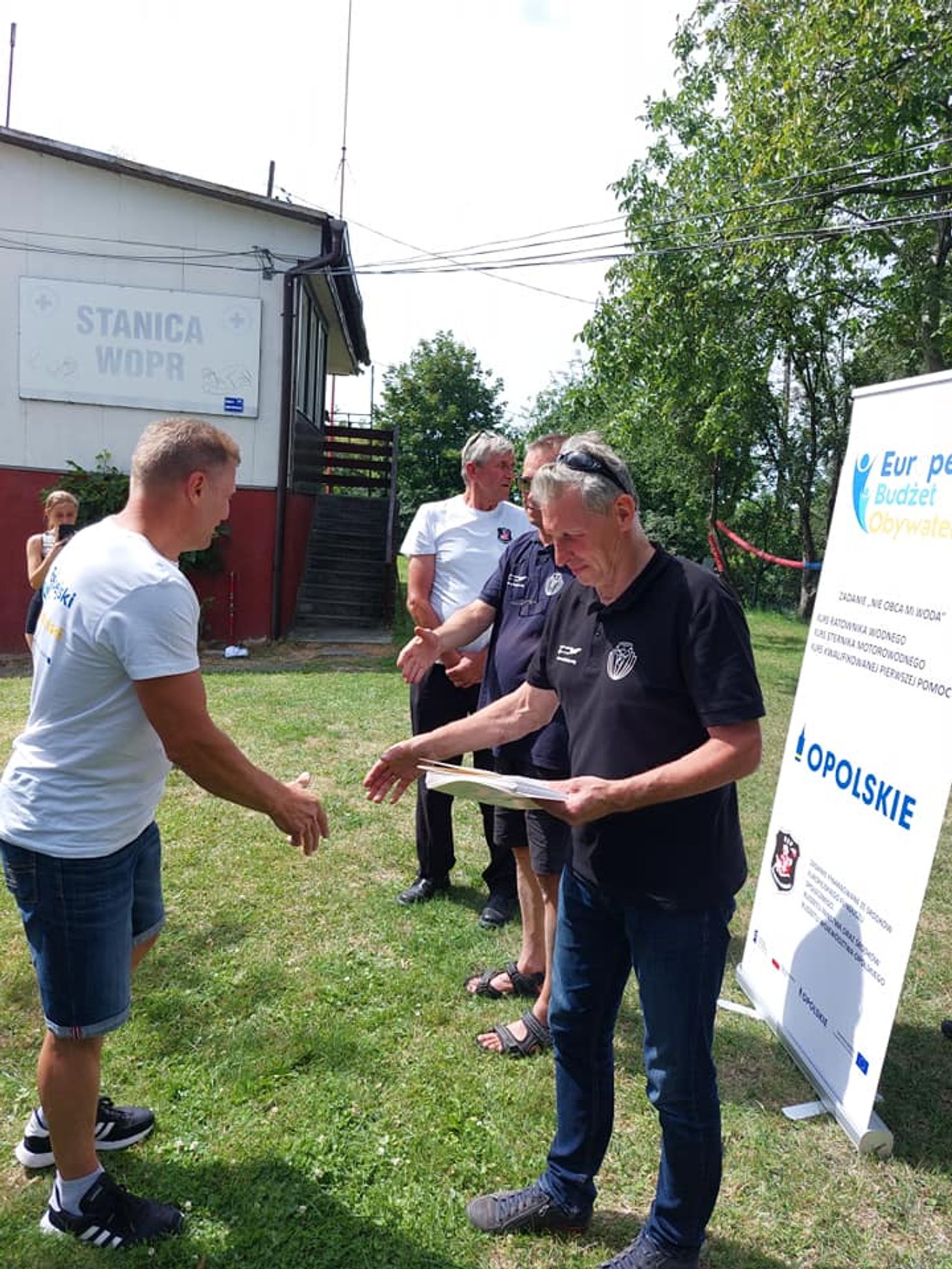 W ceremonii zakończenia kursu uczestniczyli przedstawiciele OSP Mechnica Kamionka Jan Greinert i Przemysław Zając, natomiast z ramienia wykonawcy zadania WOPR Kędzierzyn-Koźle Tadeusz Witko i Grzegorz Jarzębski. Kolejna grupa uczestnicząca w projekcie, rozpocznie szkolenie już w najbliższą sobotę (23 lipca).