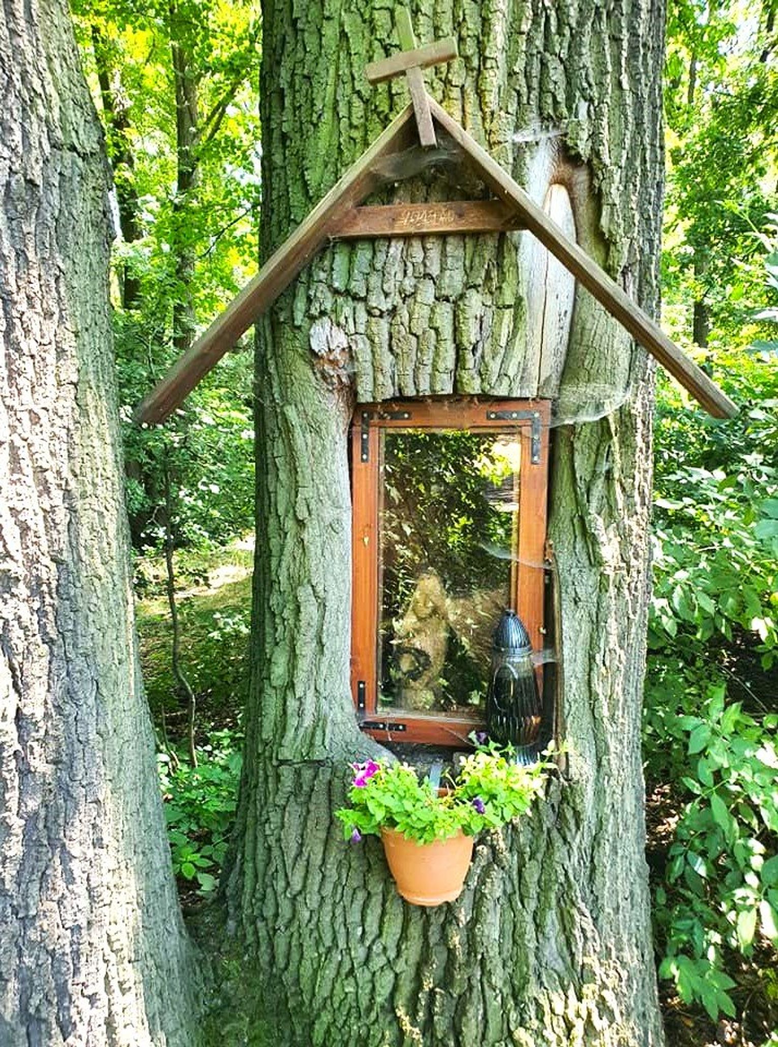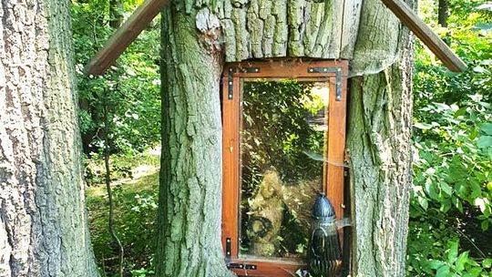Ponadto w tamtejszych lasach natrafimy na urokliwe kapliczki, dokumentujące ciekawe lokalne historie. Jedna z nich jest widoczna na poniższej fotografii autorstwa Piotra Arenta z Nadleśnictwa Kędzierzyn.