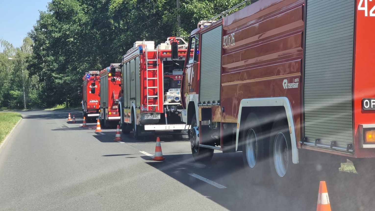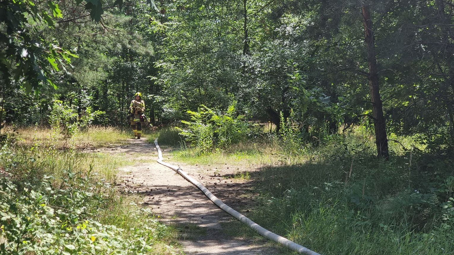 Zgłoszenie do dyżurnego Komendy Powiatowej Państwowej Straży Pożarnej w Kędzierzynie-Koźlu wpłynęło w środę, 20 lipca chwilę po godzinie 12. Zadymienie widoczne było daleko od drogi. Strażacy musieli rozwinąć sporo węży. Okazało się, że pali się ściółka, a tuż obok leżały materace i poukładane były gałązki - być może dzieci lub bezdomni zrobili sobie koczowisko i to właśnie oni zaprószyli ogień. Łącznie paliło się około 100m2. Na miejscu interweniowały również służby leśne.