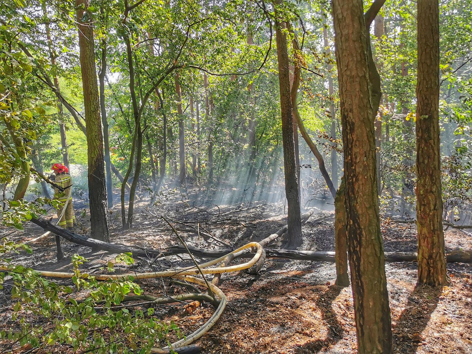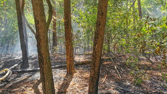 Paliła się ściółka. Nie wiadomo jak doszło do zaprószenia ognia. Na terenie Opolszczyzny, w tym Nadleśnictwa Kędzierzyn ogłoszono czerwony, najwyższy stopień zagrożenia pożarowego. Strażacy apelują o rozwagę.