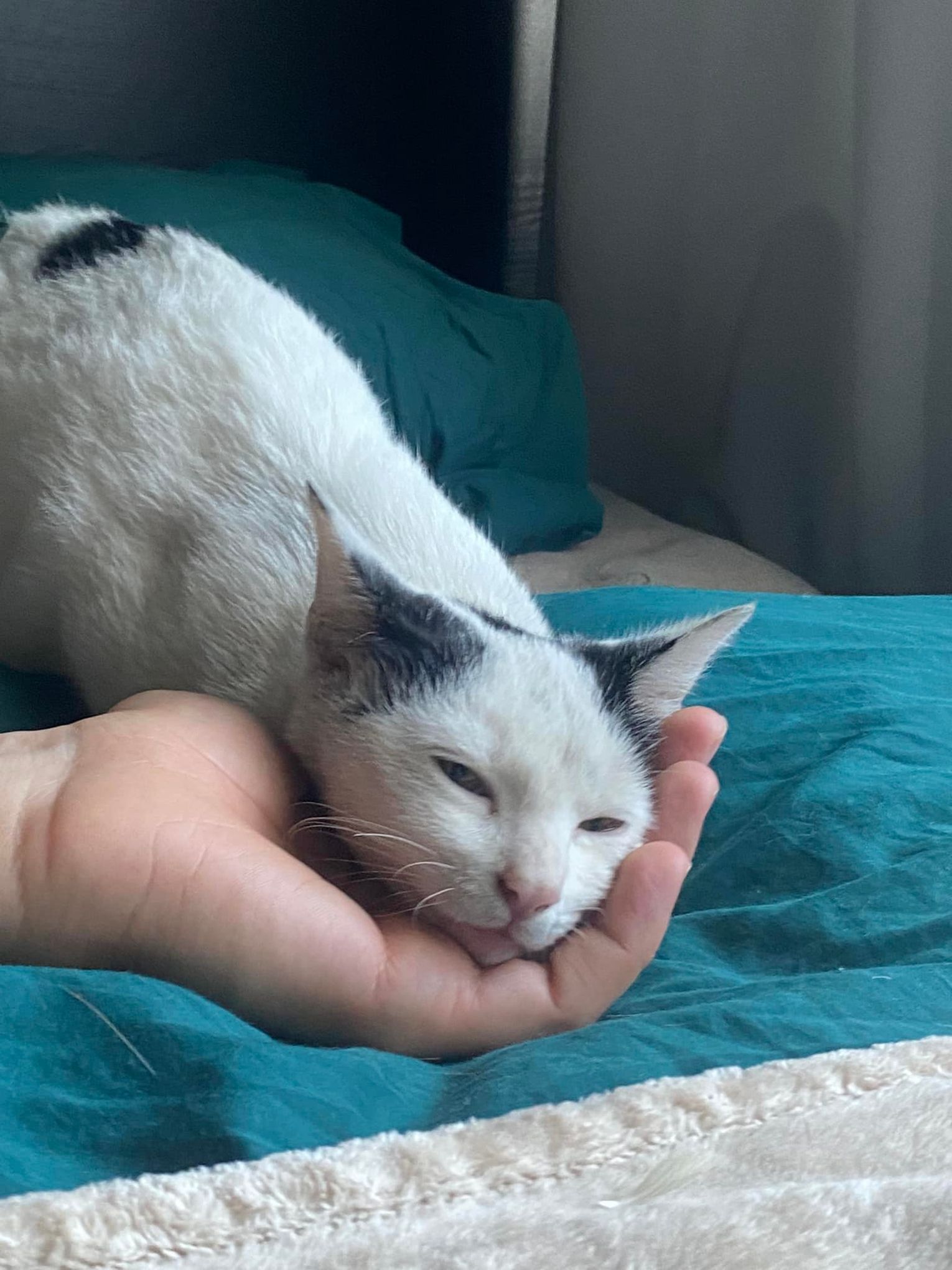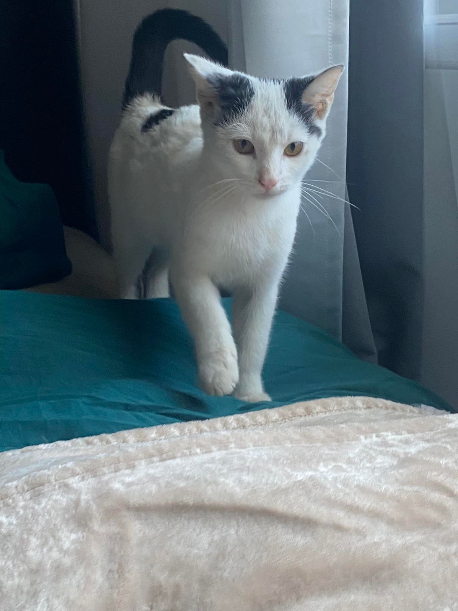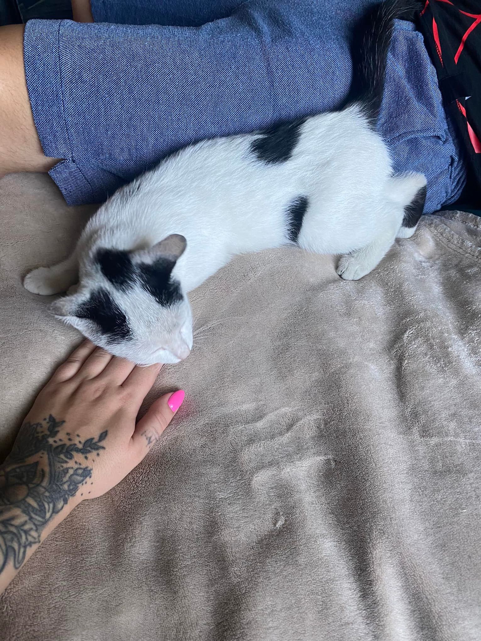 "Cześć, znalazłam na ulicy Starej małego kotka. Widać, że jest młody, to dziewczynka. Biały w czarne łatki. Dałam mu jeść i pić. Chyba komuś uciekł, bo kotek jest zadbany i przyjazny, ewidentnie widać, że nie jest to kot, który przebywa na ulicy. Postaram się go zawieźć dzisiaj do schroniska. Jeśli ktoś kojarzy, czyj to kotek, proszę o informacje, z góry dziękuje.