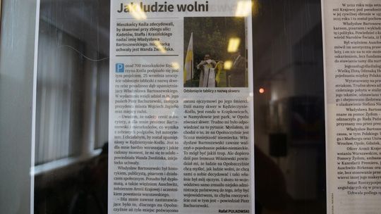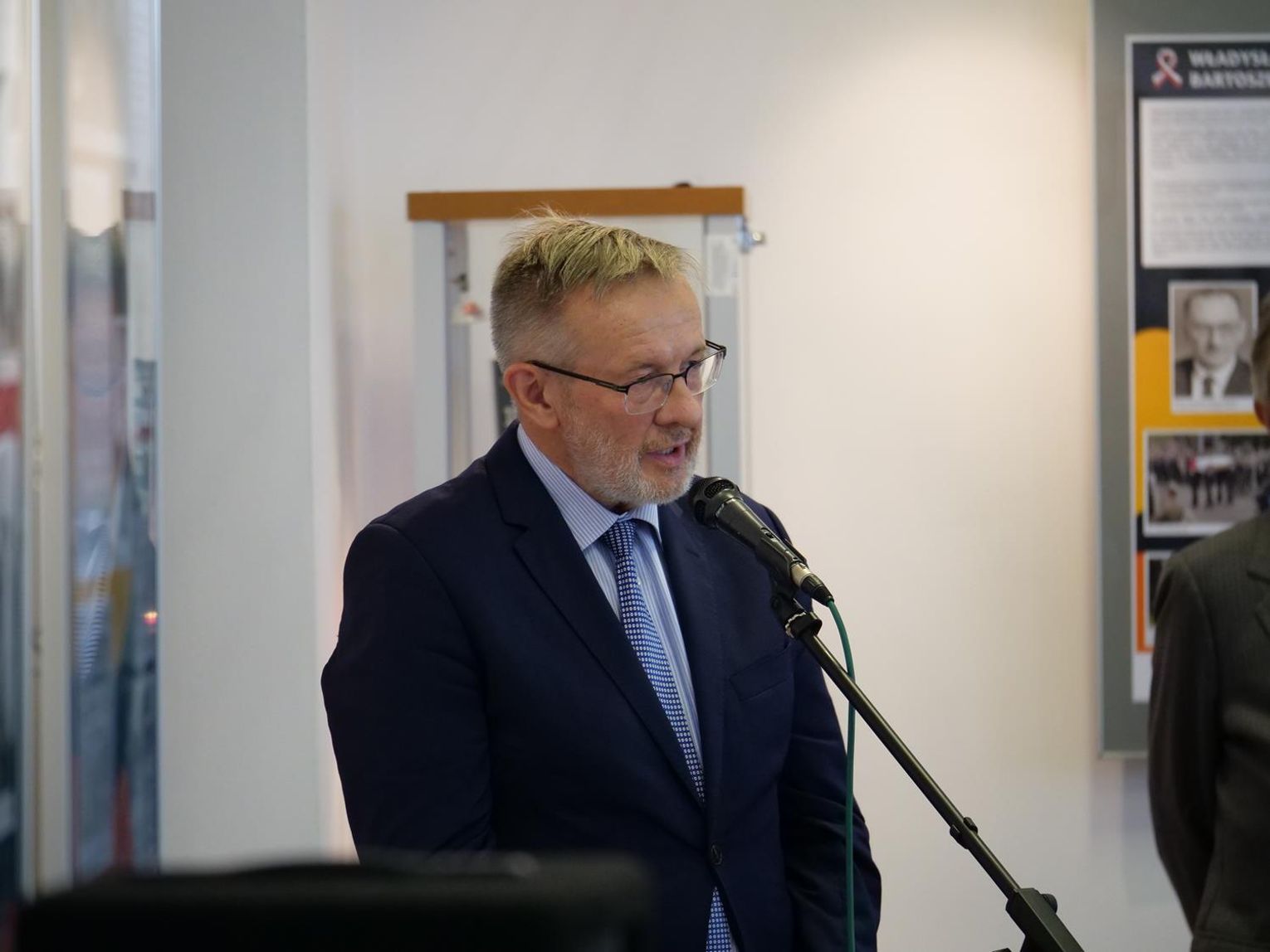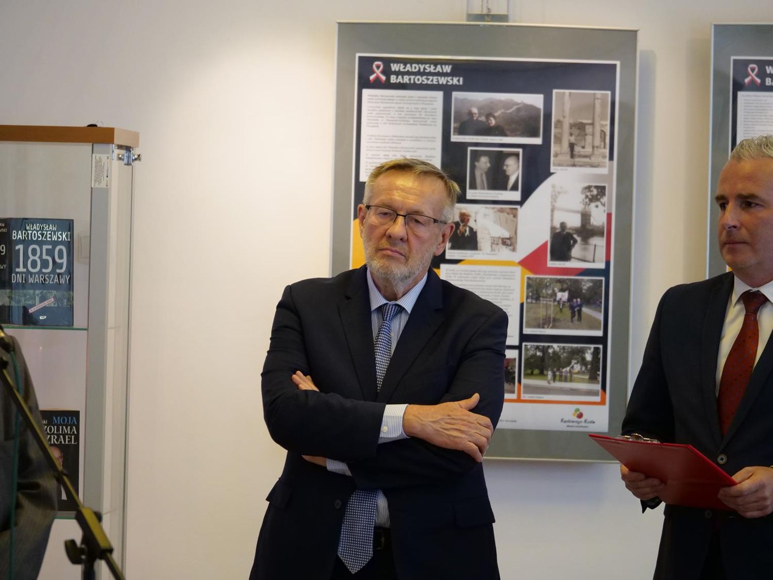 - Wystawa jest wspaniała, okazała, zachęcam wszystkich mieszkańców do odwiedzin. Natomiast o godzinie 19 na skwerze imienia Bartoszewskiego odbędzie się rozmowa na temat życia i twórczości oraz postawy obywatelskiej pana profesora. A na zakończenie wyświetlimy film, który poświęcony jest właśnie Władysławowi Bartoszewskiemu. To będzie bardzo dobra lekcja obywatelska, szczególnie w czasach, kiedy mamy do czynienia z różnymi próbami zakłamywania rzeczywistości - opowiadał Ireneusz Wiśniewski, przewodniczący Rady Miasta, który otworzył wernisaż wraz z członkiem rodziny profesora Piotrem Bachurzewskim i Andrzejem Sterańskim, Głównym Koordynatorem ds. Projektów Regionalnych w Biurze Rzecznika Praw Obywatelskich.