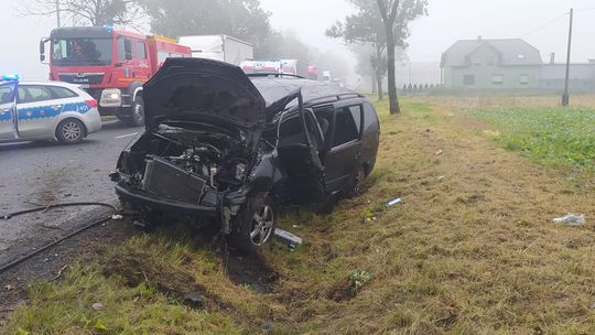 Zgłoszenie do operatora numeru alarmowego wpłynęło w czwartek, 22 września kilkanaście minut przed godziną 8. Na miejsce skierowano zastępy straży pożarnej, zespół ratownictwa medycznego oraz policję. 18-letna kierująca z nieznanych przyczyn zjechała z drogi i uderzyła w drzewo. Poszkodowana została przetransportowana do szpitala. Na czas prowadzonych działań droga była całkowicie zablokowana. Policjanci pracujący na miejscu ustalają szczegółowe okoliczności tego zdarzenia.