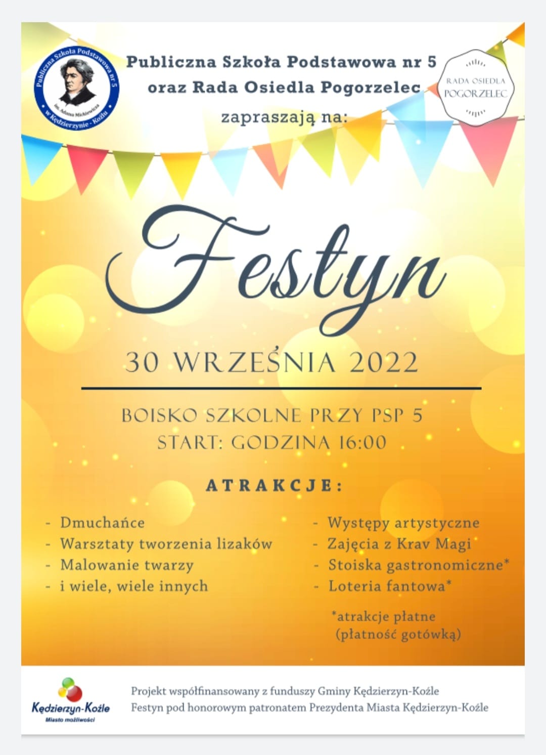 Start imprezy o godzinie 16.00. Wstęp jest bezpłatny. Organizatorzy zapewnili sporo atrakcji: dmuchańce, warsztaty tworzenia lizaków, malowanie twarzy, występy artystyczne, zajęcia z Krav Magi, stoiska gastronomiczne, loteria fantowa i wiele innych.