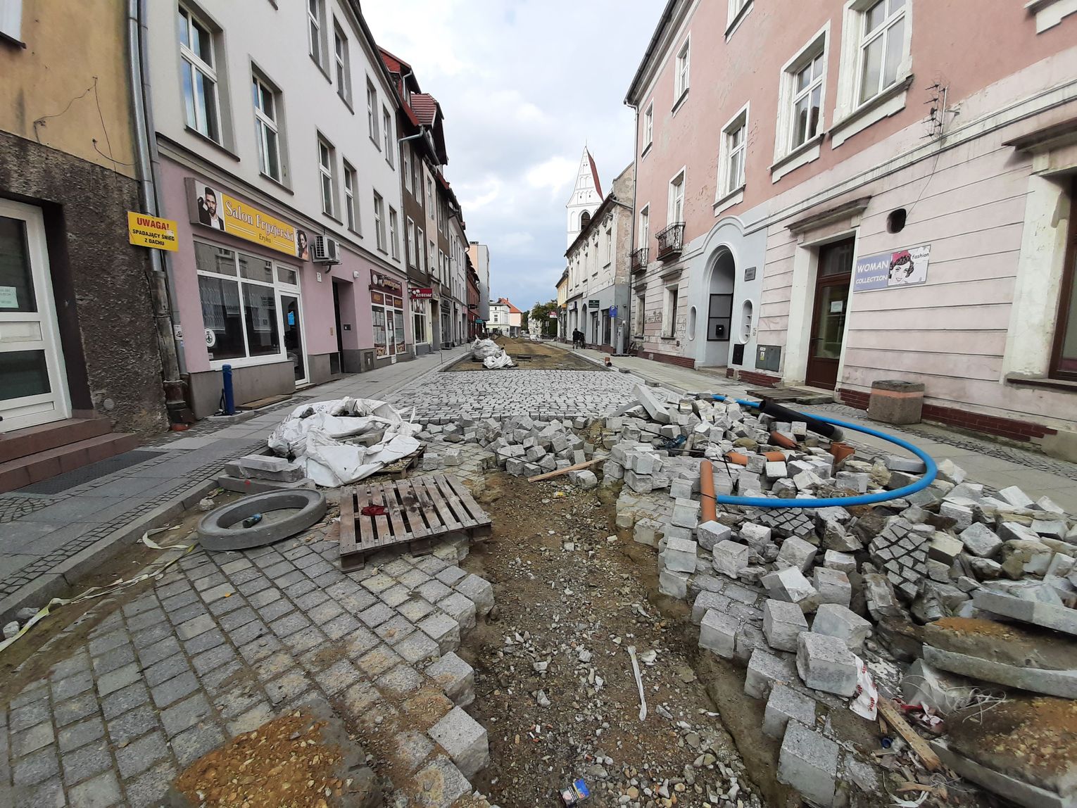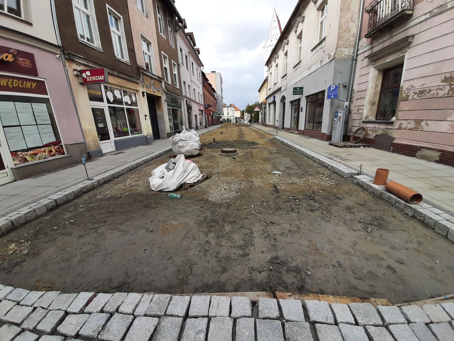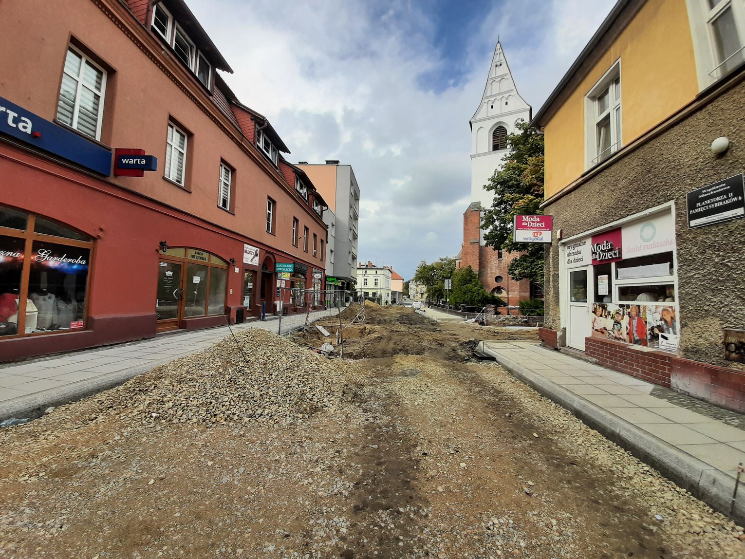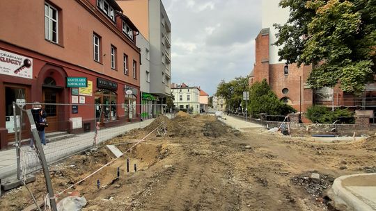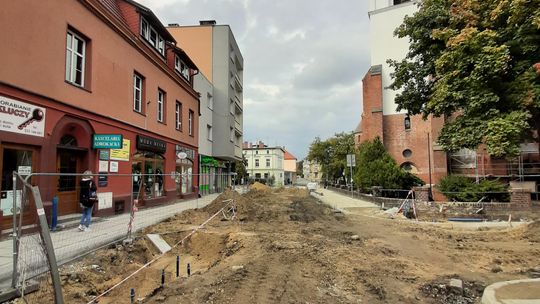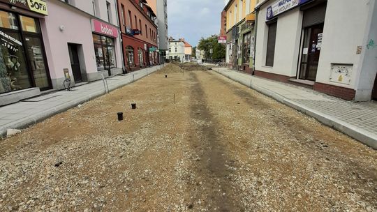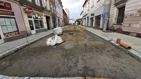 W związku z przebudową praktycznie od początku czerwca droga jest zamknięta na odcinku od skrzyżowania z ul. Marii Konopnickiej do Rynku. Wysłużony asfalt zastąpi tam granitowa kostka, nawiązująca do historycznego charakteru serca starówki. Zresztą na odcinku ulicy Pamięci Sybiraków położonym najbliżej płyty rynku, układana jest już nowa kostka.