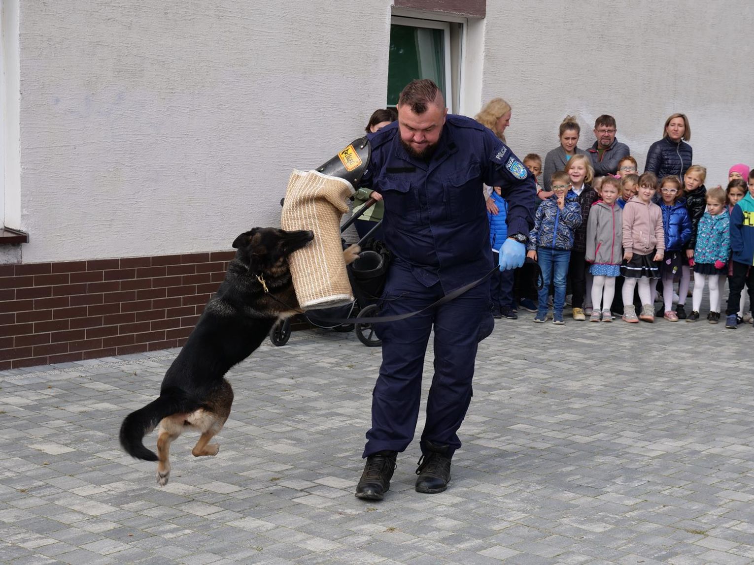Przedszkolaki przygotowały też program artystyczny dla zaproszonych gości. Ostatnim etapem wydarzenia był piknik prewencyjny, podczas którego policjanci zaprezentowali radiowozy i nowy motocykl, dużą atrakcją okazał się pokaz z psem tropiącym oraz akcesoria typu alkogogle. Policjanci przygotowali także kilka konkursów z nagrodami.