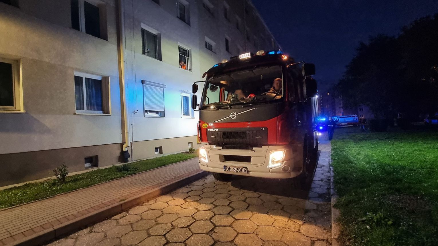 Trzy zastępy straży pożarnej w tym autodrabina, zespół ratownictwa medycznego oraz patrol policji interweniowali w jednym z bloków przy ulicy Spółdzielców.