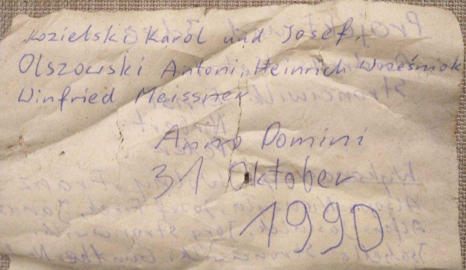 Na pożółkłym papierze można odczytać imiona i nazwiska znanych osób, które prawdopodobnie brały udział w pracach remontowych wykonanych ponad 30 lat temu. W nowej aranżacji kapliczki wykonawcy zdeklarowali odtworzenie kapliczki w zarysie widniejącym z pierwszych obrazów i fotografii dostępnych w archiwum nadleśnictwa.