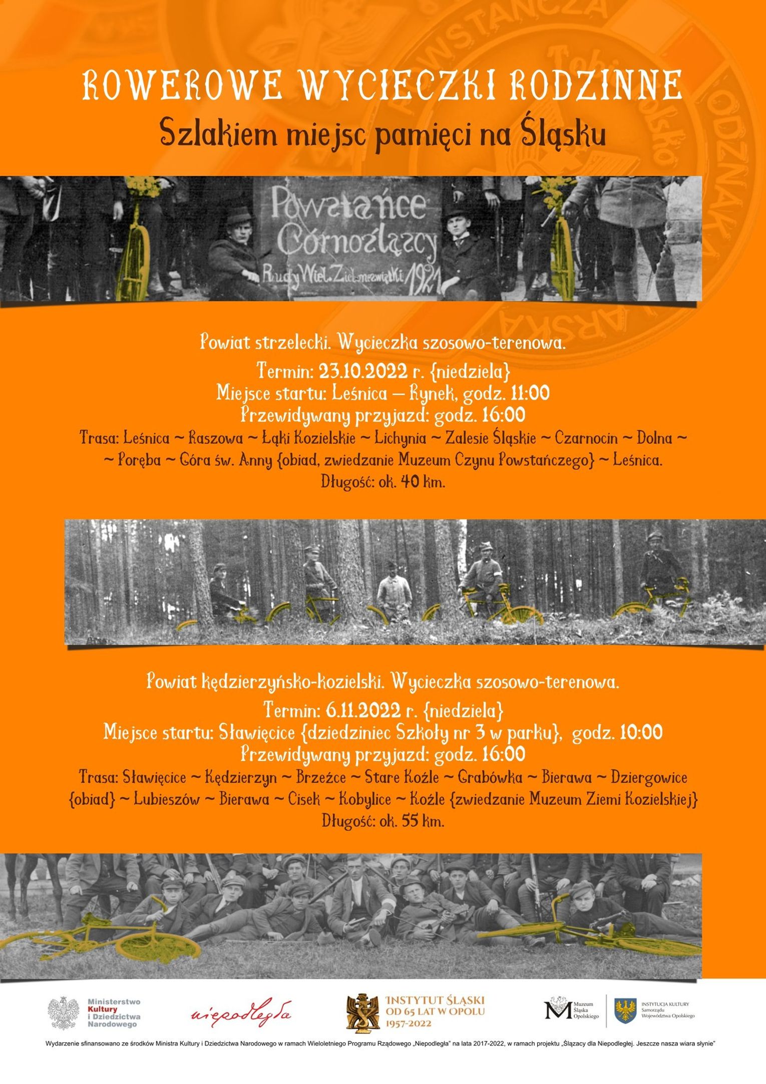 Wycieczki poprowadzone zostaną po trasach prezentowanych w przewodniku rowerowym: „Rowerem po Śląsku Opolskim”. Uczestnicy wycieczek stają przed szansą zdobycia Powstańczej Odznaki Kolarskiej (POK). Spełniając wymogi określone w zamieszczonym poniżej regulaminie POK, można zdobyć brązową, srebrną lub złotą Powstańczą Odznakę Kolarską.