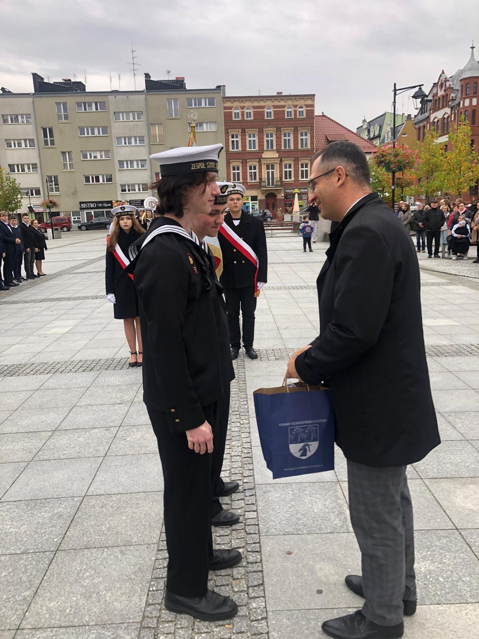 Specjalne podziękowania z rąk starosty Pawła Masełki otrzymali Kacper Nowak oraz Cezary Pawłowicz za to, że bez wahania podjęli akcję ratowania życia przypadkowego przechodnia. Gratulujemy postawy!