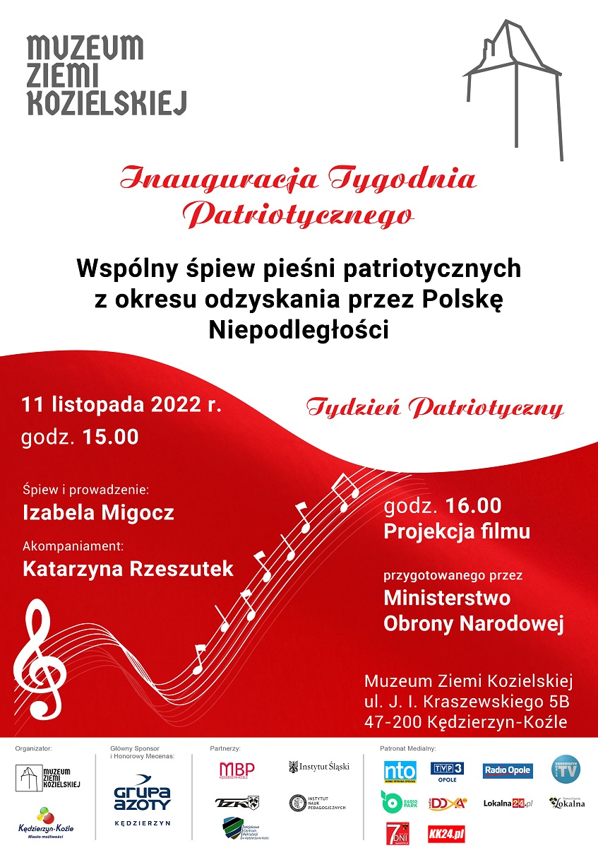 W programie wspólny śpiew pieśni patriotycznych z okresu odzyskania przez Polskę Niepodległości. Spotkanie organizowane jest dla uczczenia Dnia Niepodległości, święta obchodzonego od 104 lat. W ten sposób pragniemy Państwa zainspirować do zaprezentowania swojej muzykalności, wrażliwości, emocjonalności i zamiłowania do śpiewu. Cech, które jakże wspaniale charakteryzują Polaków i nasze umiłowanie Ojczyzny.