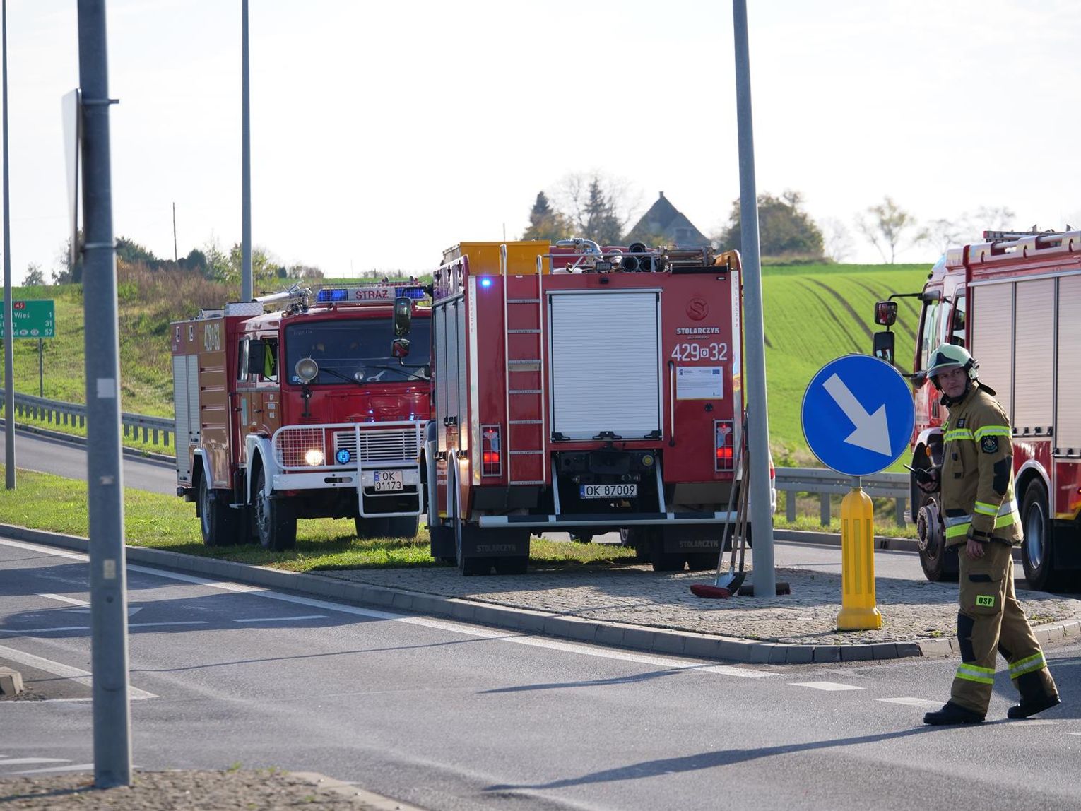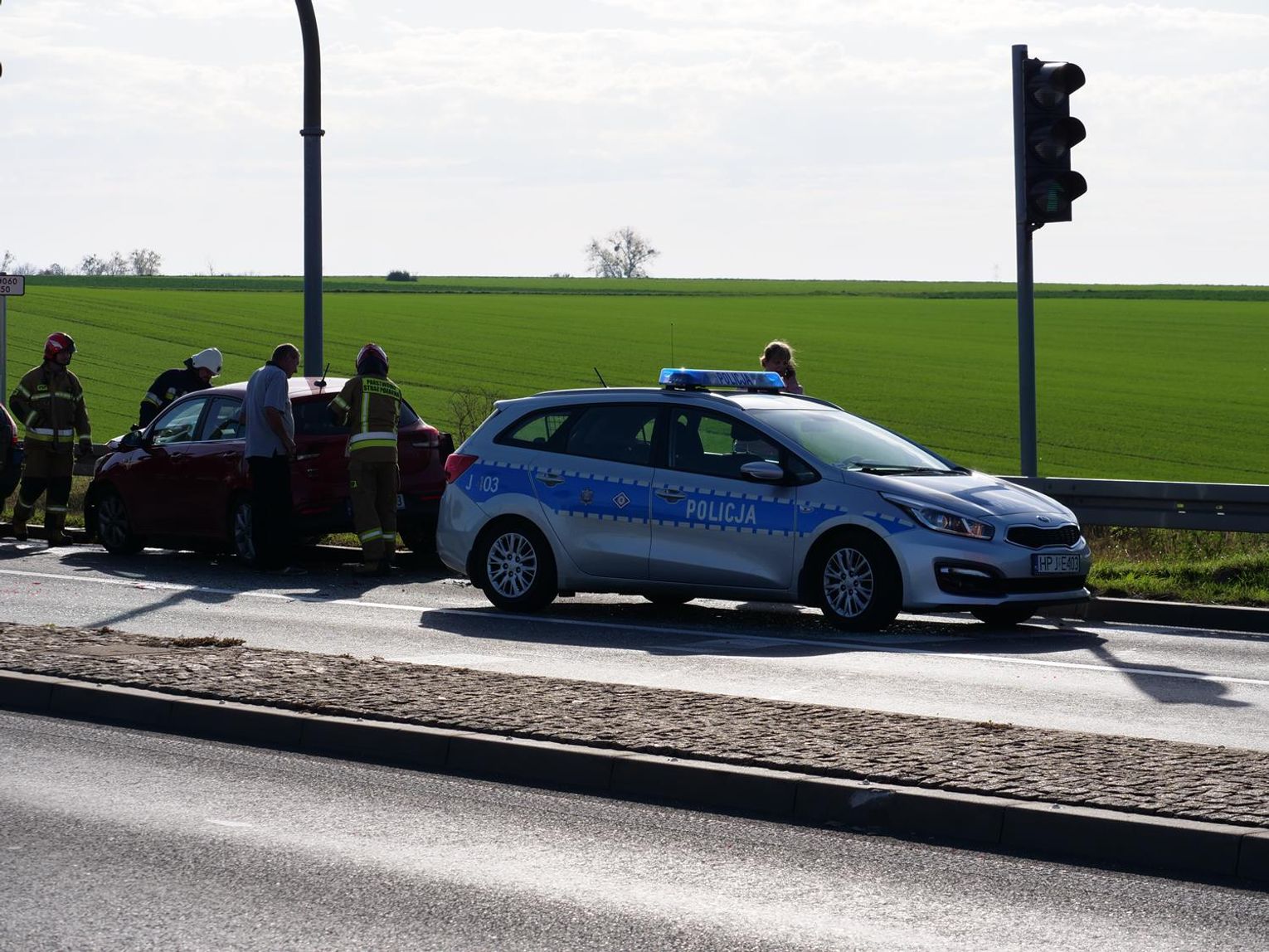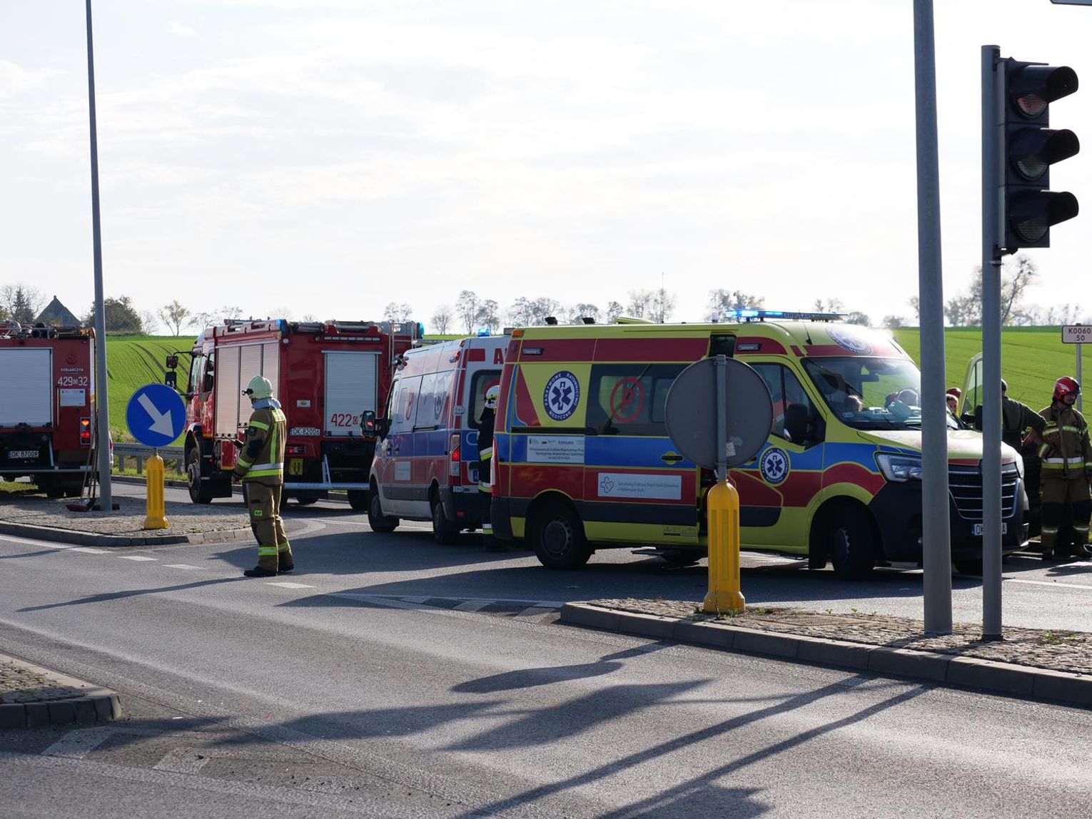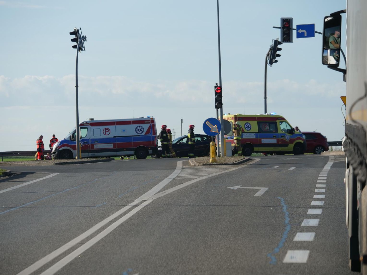 Na miejscu interweniowało pięć zastępów straży pożarnej, dwa zespoły ratownictwa medycznego oraz policjanci z wydziału ruchu drogowego, którzy ustalają szczegółowe okoliczności tego zdarzenia. Na czas prowadzonych działań ruch w tym miejscu odbywał się wahadłowo.