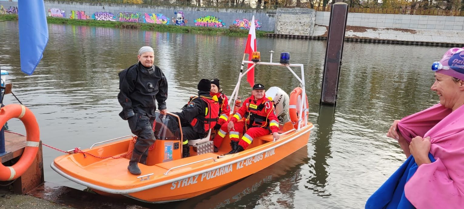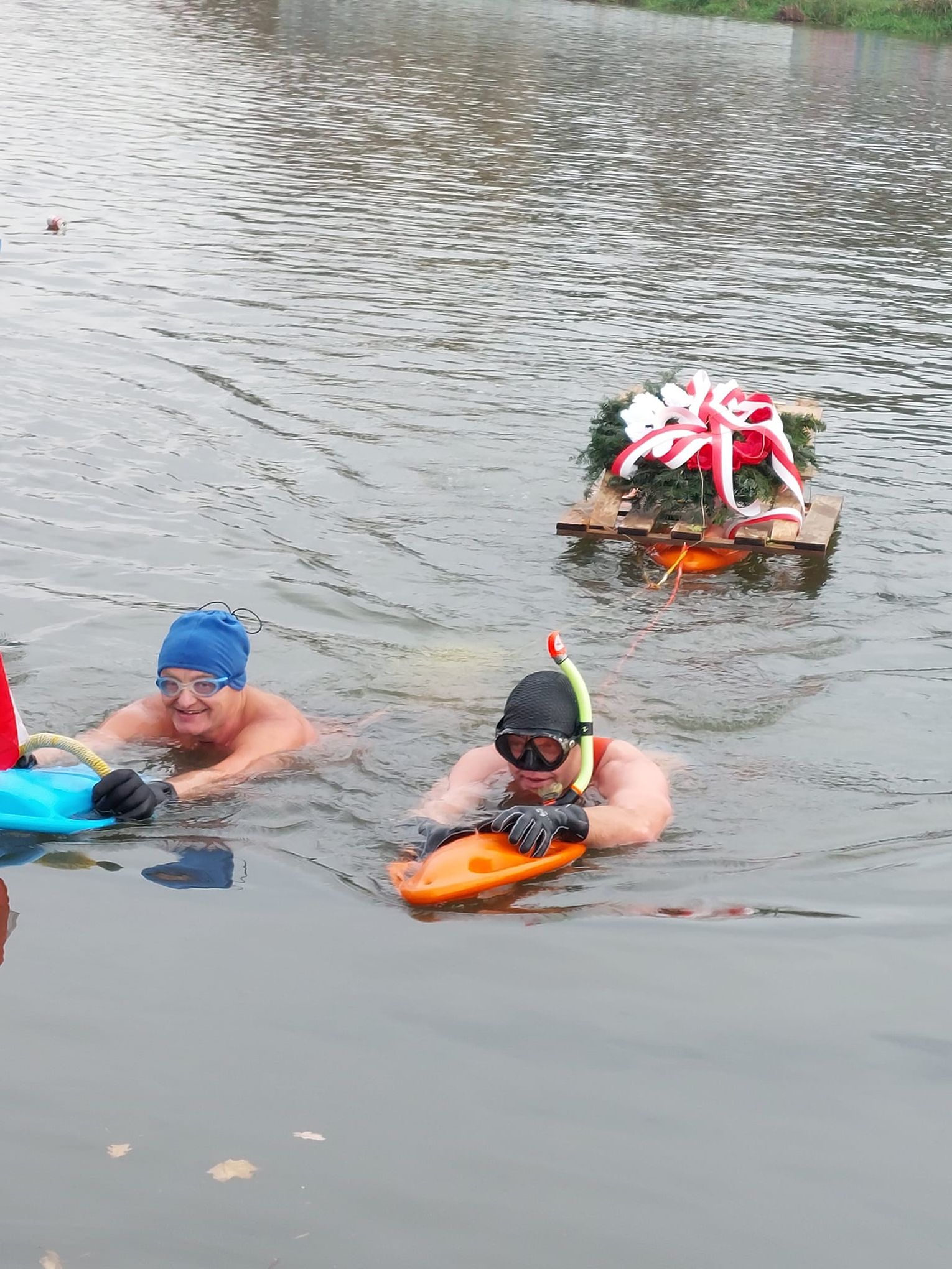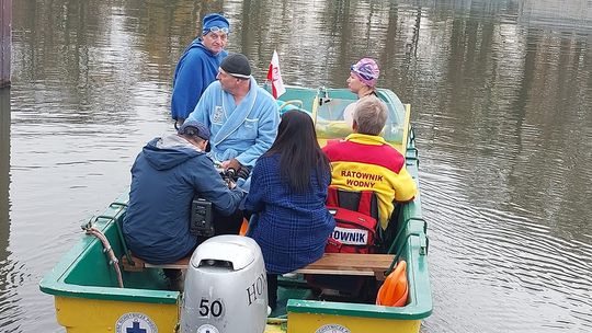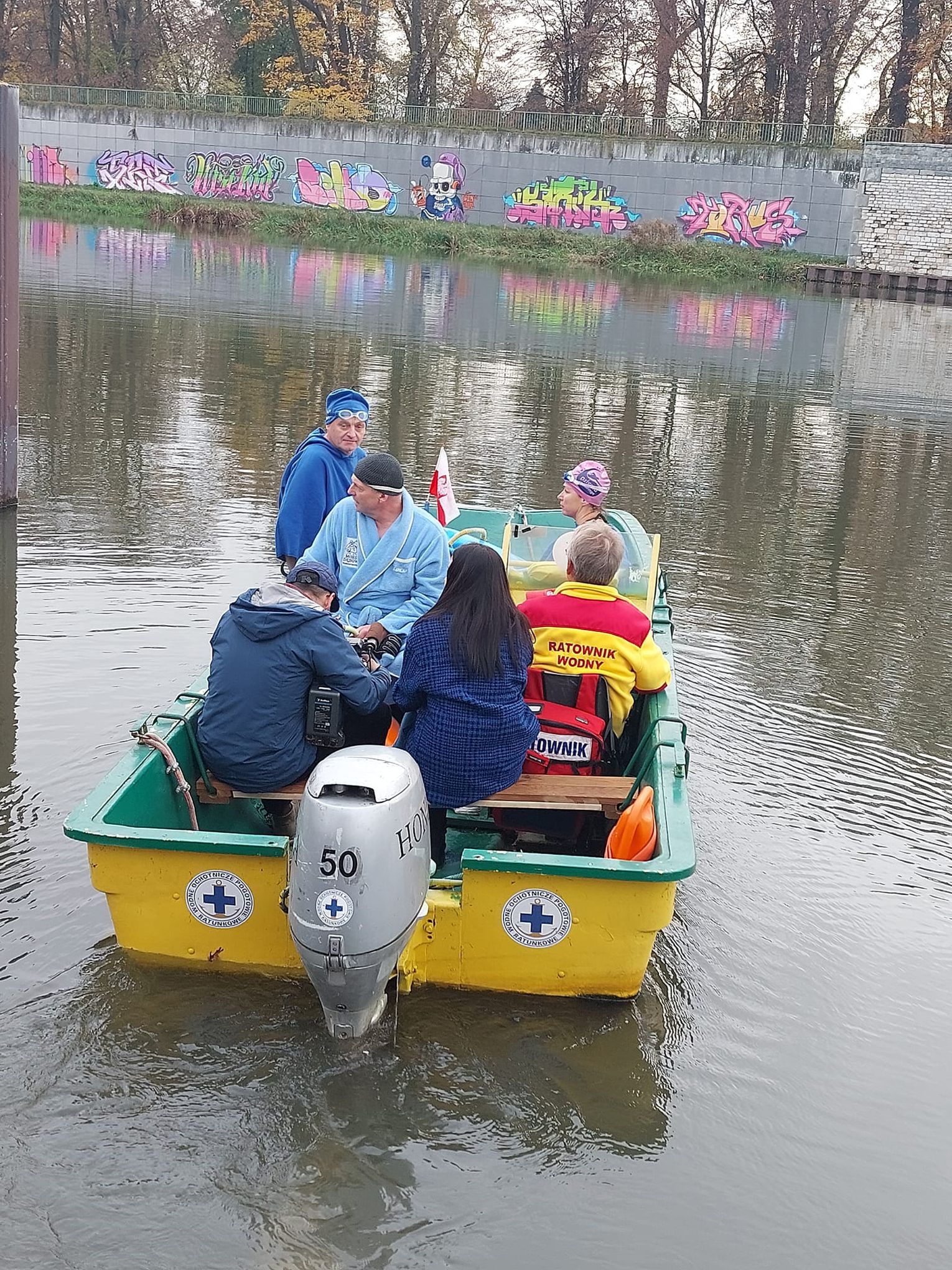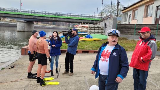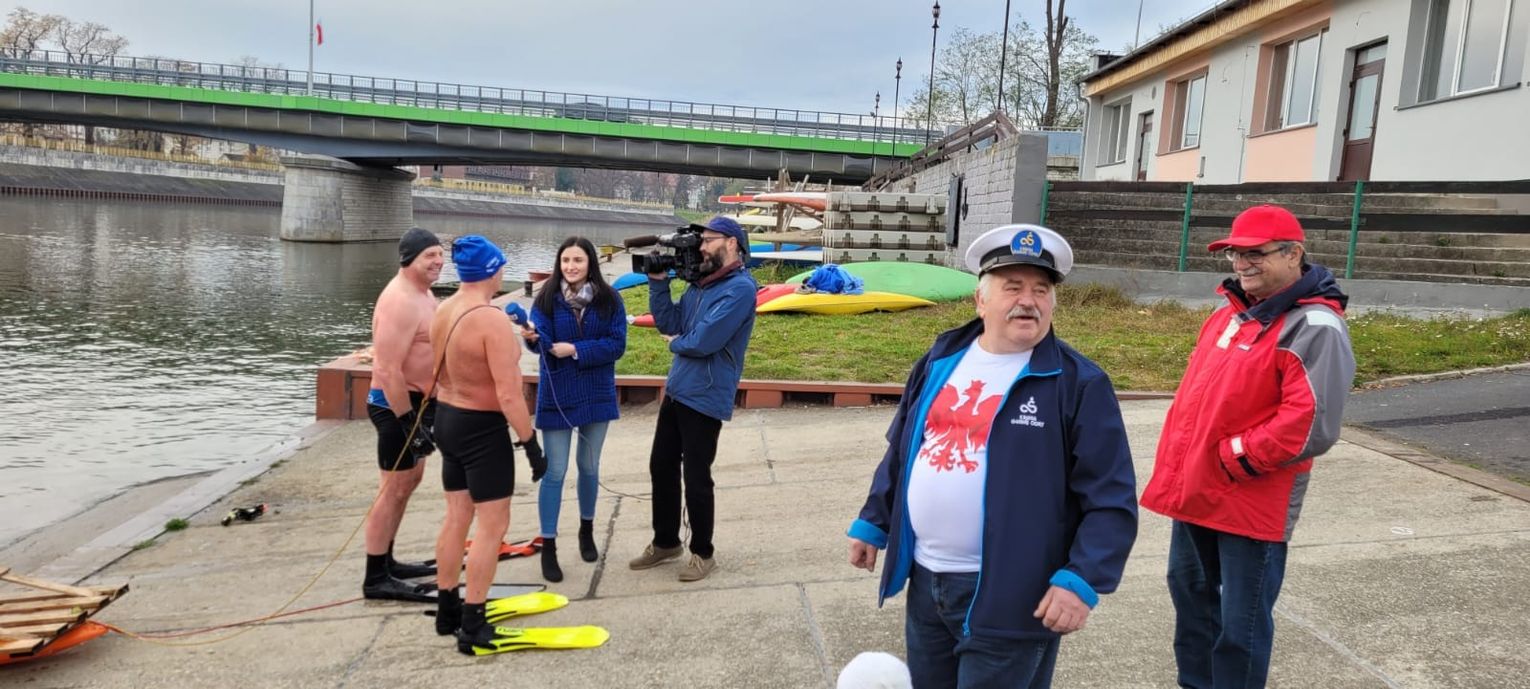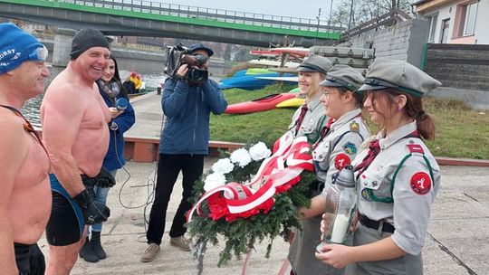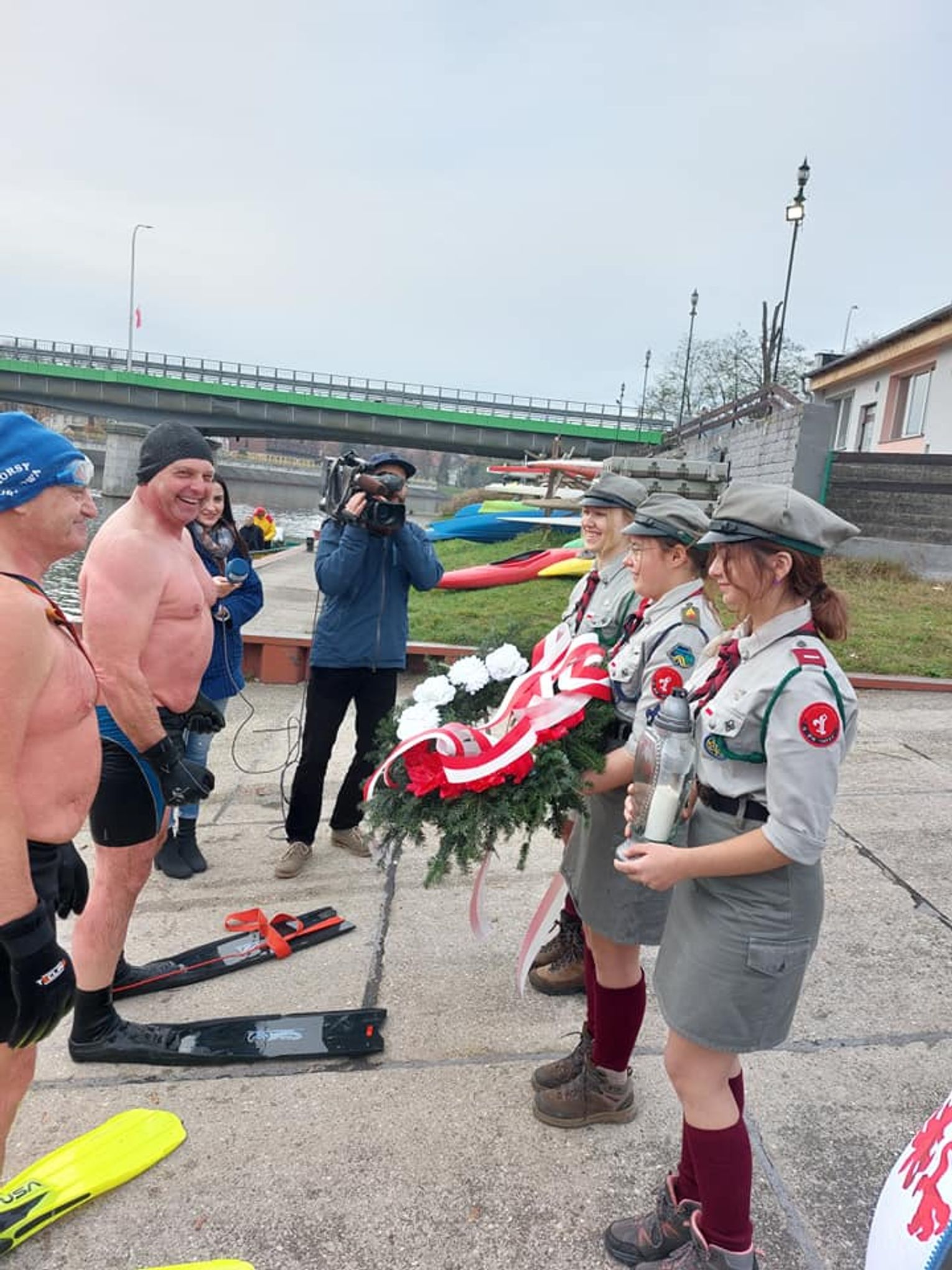 Troje śmiałków weszło do lodowatej Odry, aby przepłynąć z biało-czerwonym wieńcem. Kwiaty zostały przekazane harcerzom, którzy złożyli je przy pomniku marszałka Józefa Piłsudskiego.