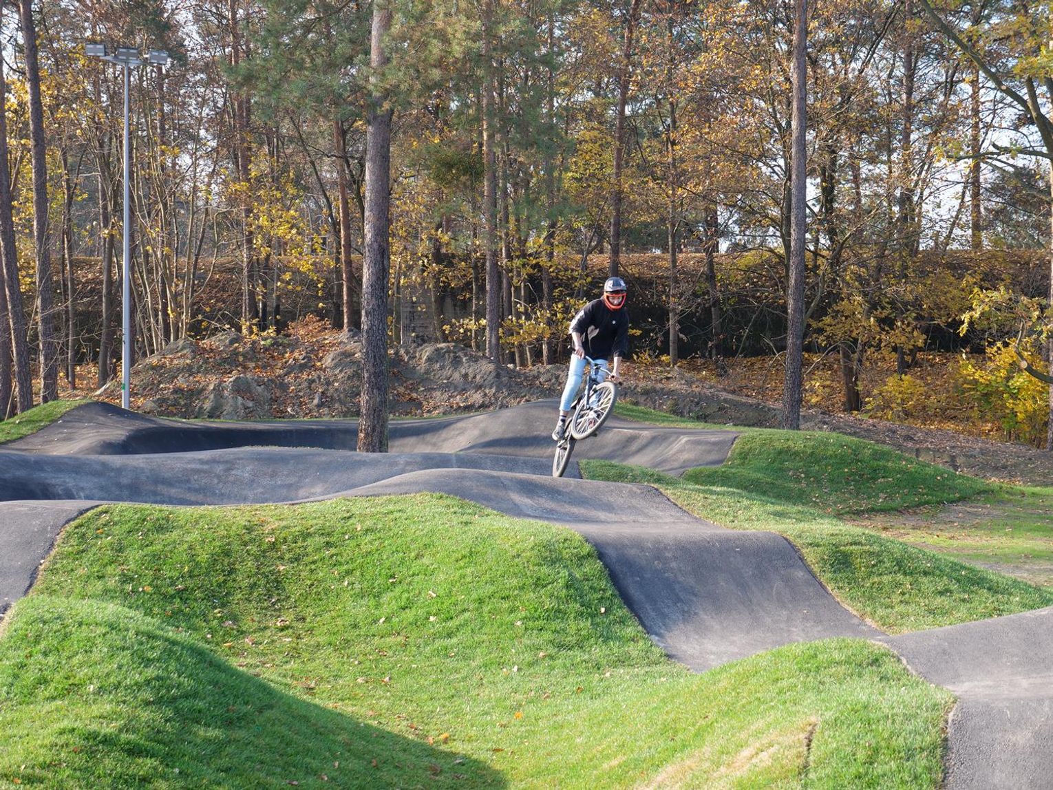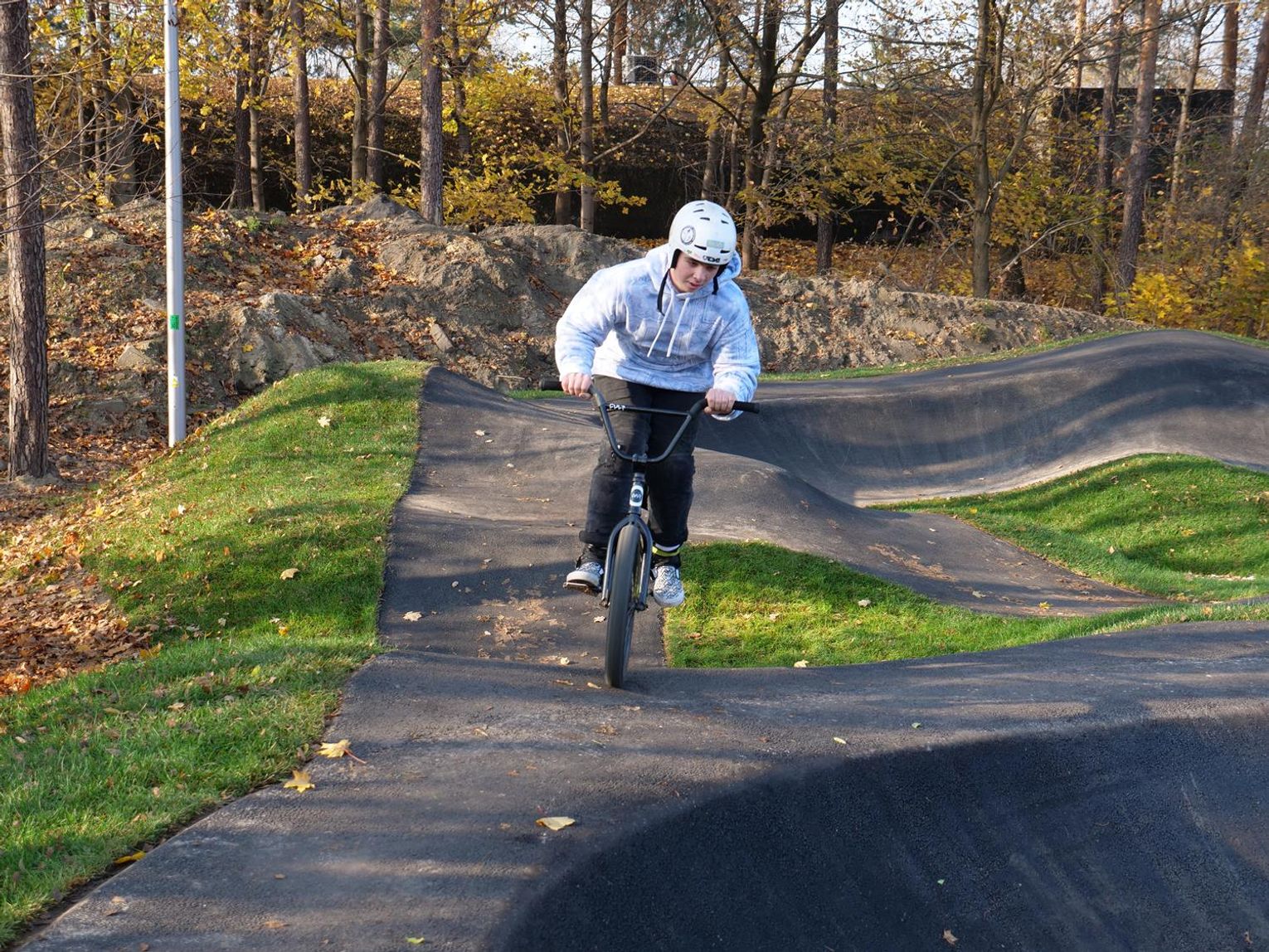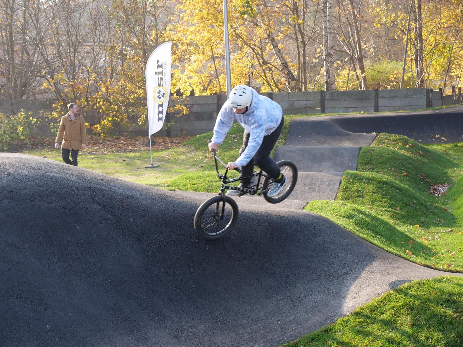 - Drugi etap, to będzie Dirt Track, czyli najtrudniejszy element, który był zbudowany w lesie na osiedlu Piastów. Natomiast ostatnim punktem będzie City Trail dookoła całej płyty boiska, czyli taki tor rowerowy z małymi górkami i mostkami, przeznaczony bardziej do celów rekreacyjnych. Będzie on dla każdego, nawet dla najmłodszych, którzy dopiero uczą się jeździć na rowerze - powiedział Tomasz Radłowski, dyrektor MOSiR.