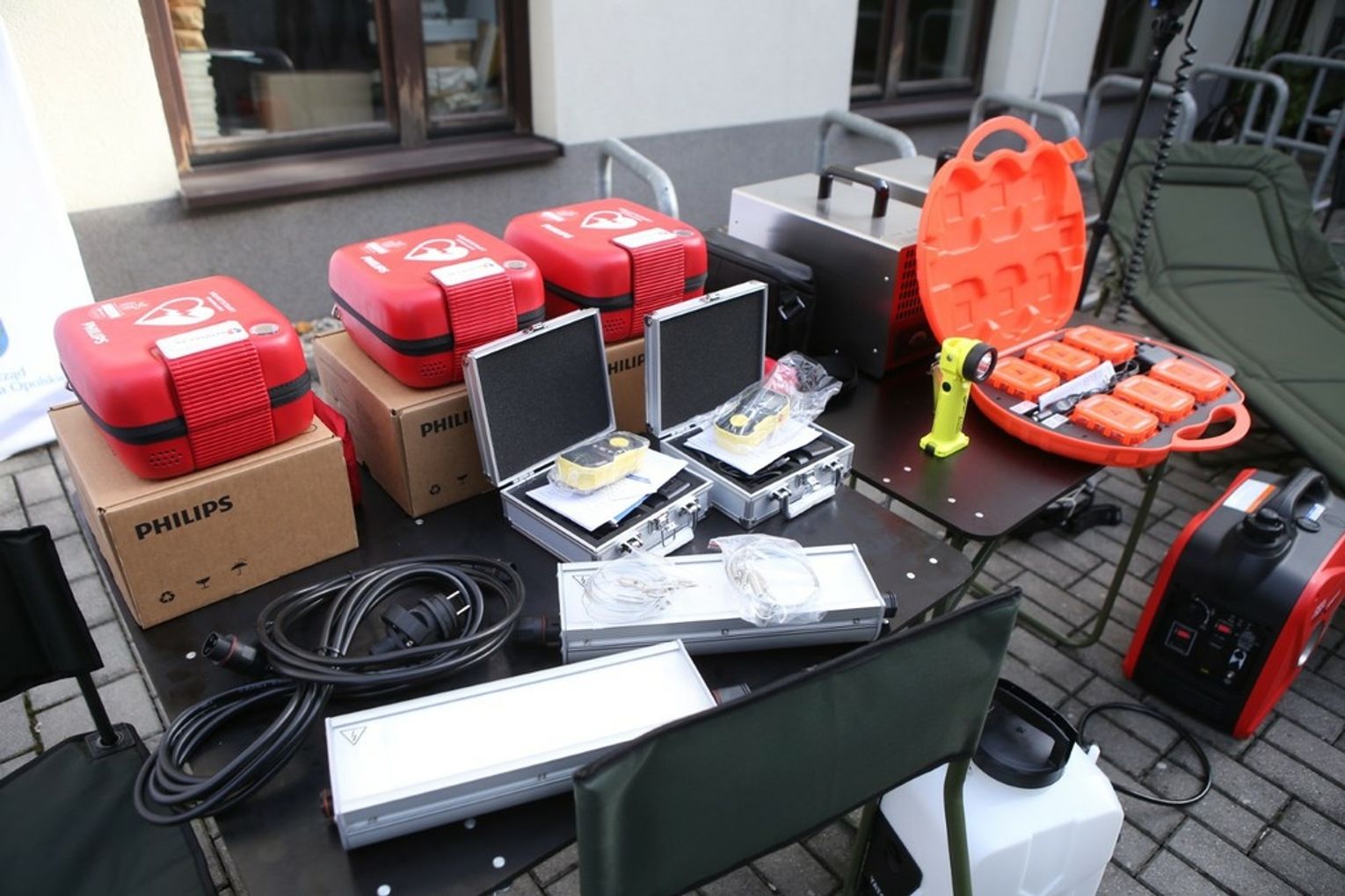 Teraz zakończono drugi etap projektu – powiaty otrzymały specjalistyczne wyposażenie do przeciwdziałania i usuwania skutków zagrożeń w regionie. W każdym samochodzie znajdzie się więc m.in.: namiot pneumatyczny, agregat prądotwórczy, nagrzewnica olejowa, lampa namiotowa, stół polowy, łóżko polowe, krzesła składane, taboret, fotel składany, mobilny opryskiwacz z akumulatorem, defibrylator, dron, ozonator powietrza, latarki taktyczne, dyski sygnalizacyjne, najaśnica z ładowarką, osuszacz powietrza oraz miernik ozonu. Wartość tego sprzętu do wszystkich aut to ponad 992 tys. zł.