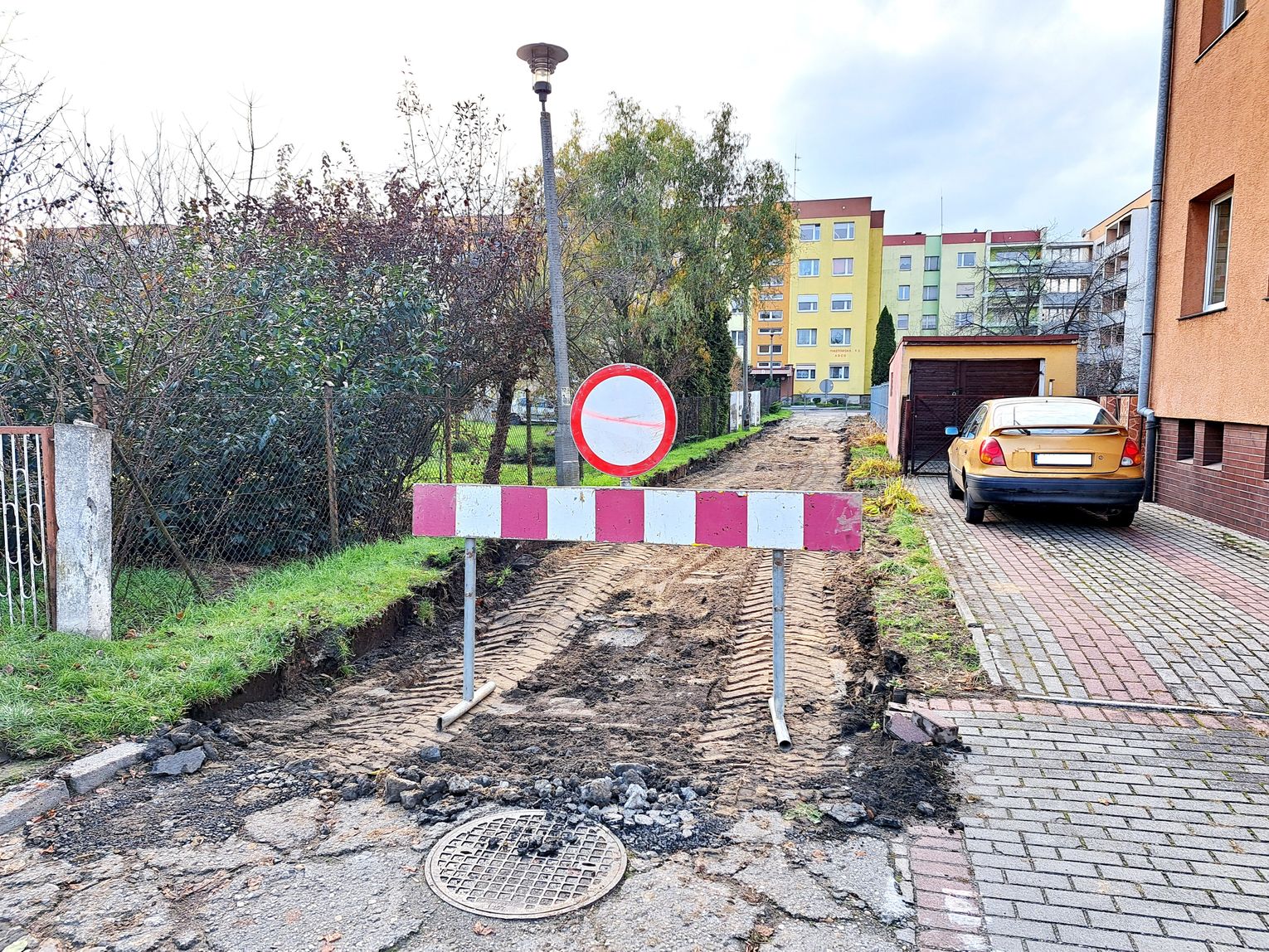 Kilkudziesięciometrowy odcinek wspomnianej drogi na os. Zachód, pokrywały stare betonowe płyty, pamiętające jeszcze lata 80. XX wieku. Już pierwszego dnia robót, zostały one usunięte. Teraz pracownicy firmy PRDiM Kędzierzyn-Koźle przystąpią do budowy kanalizacji deszczowej.
