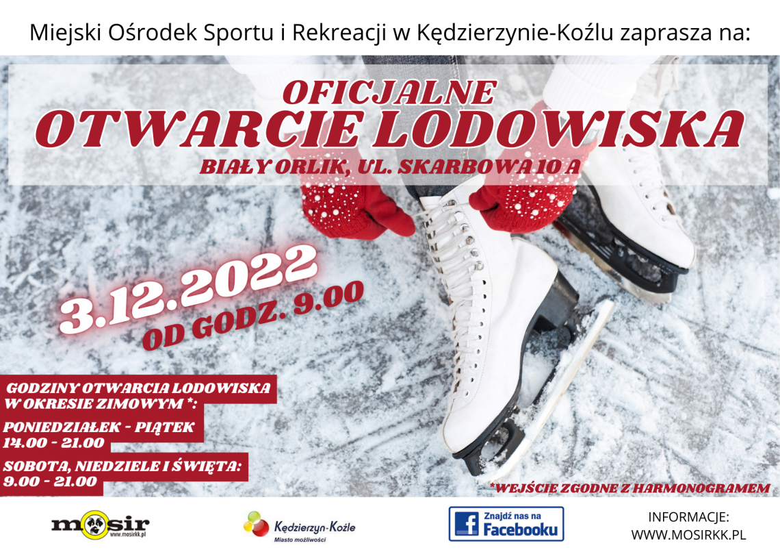 Dnia 24.12, 31.12.2022 r. lodowisko będzie czynne w godz. 9:00 do 13:00,