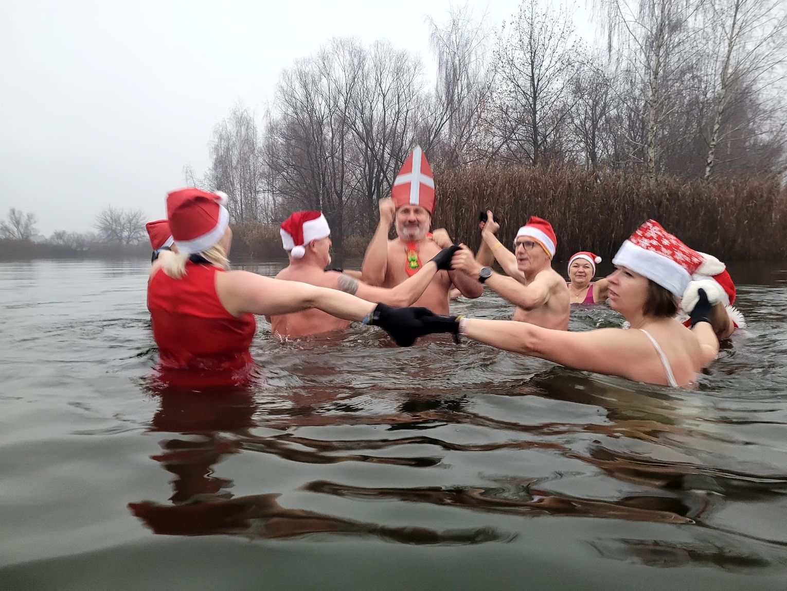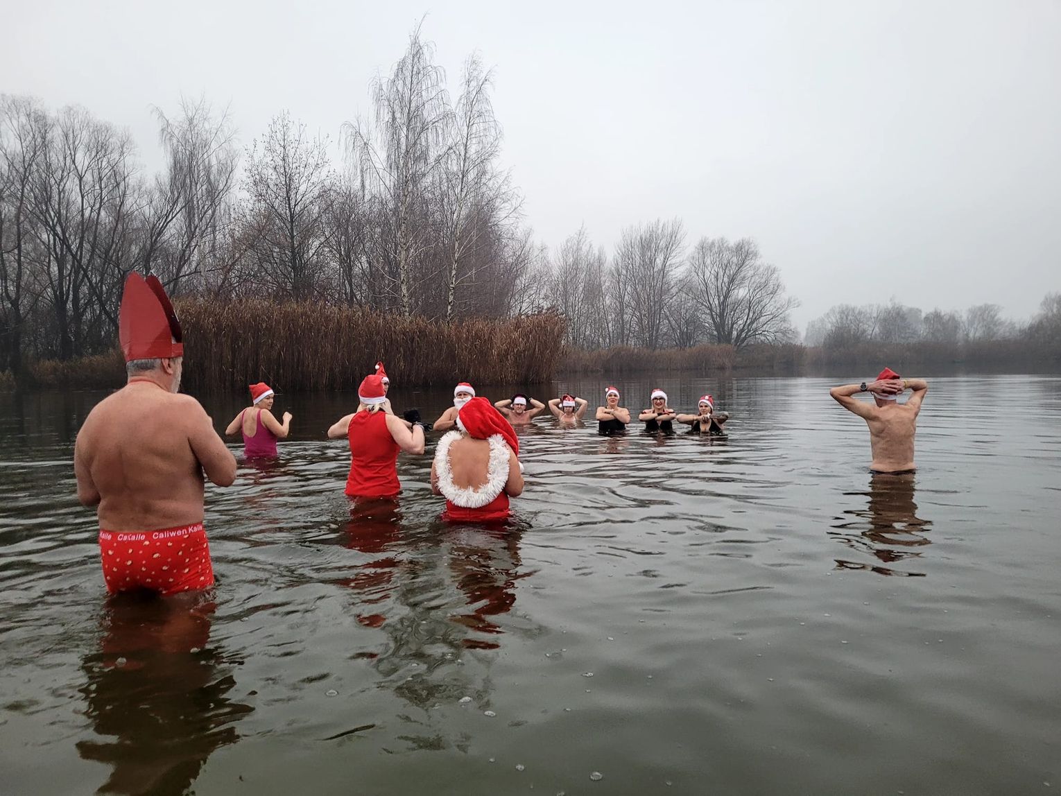 Jak donoszą nasi informatorzy, nie wykluczone jednak, że to jedynie farbowani Mikołaje. Prawdopodobnie w nowe role wcieliły się nasze niezawodne Morsy i Foczki Dębowa, które we wtorkowy poranek (o godzinie 8:04) postanowiły sprawdzić temperaturę wody w tamtejszym akwenie. Wrażenia bardzo pozytywne. Woda ciepła jak na Malediwach.
