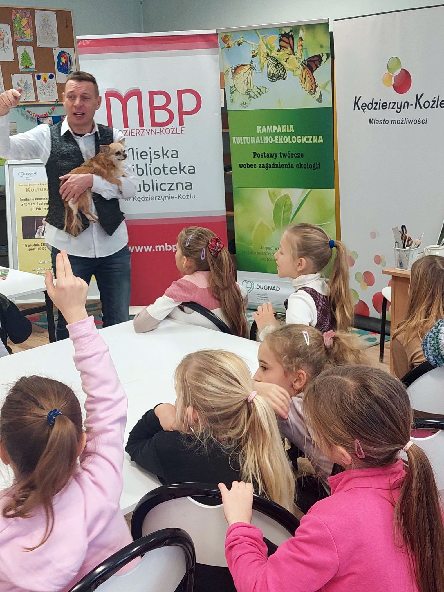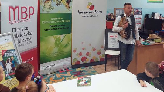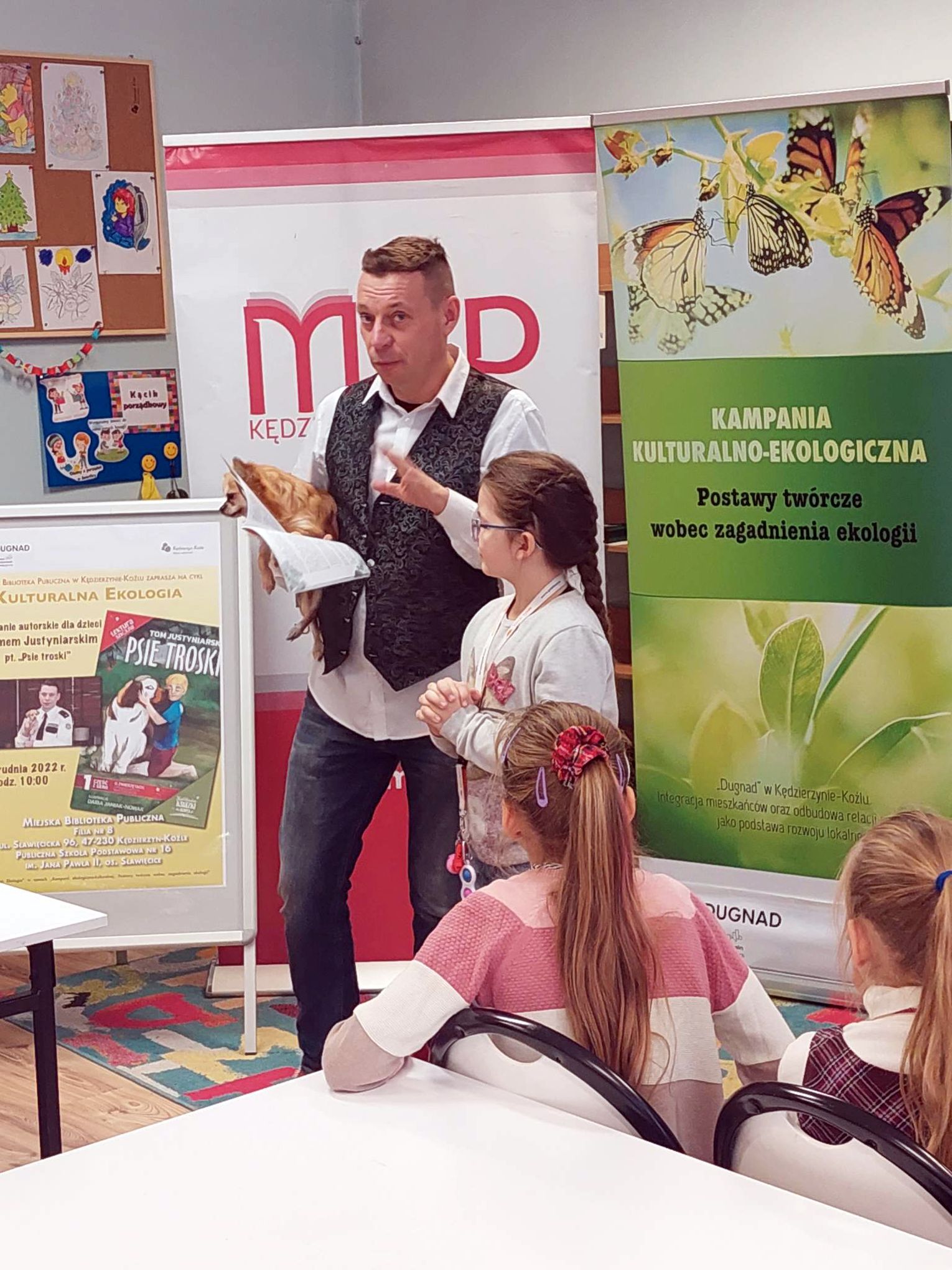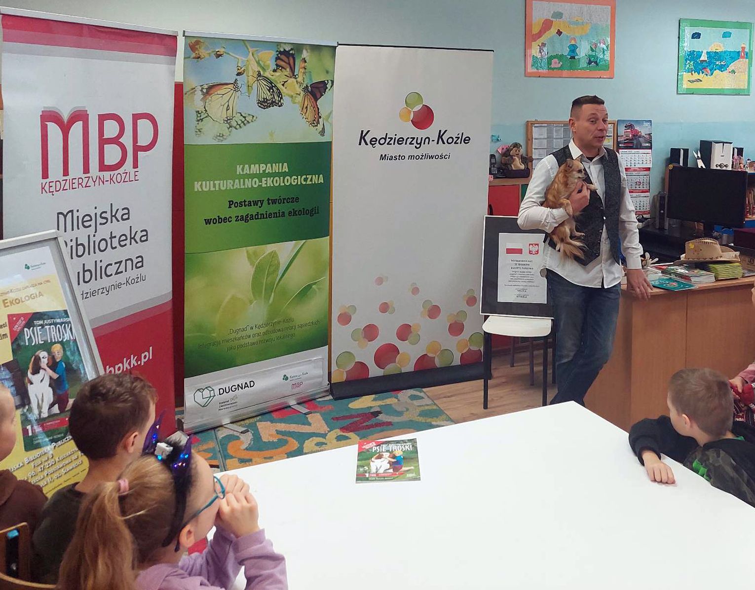 We wszystkim pomagała Tomowi wspaniała i niezwykle grzeczna Lusia. Wszystko to odbyło się w ramach Kulturalnej Ekologii. Przedsięwzięcie „Spotkanie autorskie dla dzieci z Tomem Justyniarskim pt. „Psie troski”” realizowane jest w ramach PROGRAMU ROZWÓJ LOKALNY, projekt pn.: „Dugnad w Kędzierzynie-Koźlu. Integracja mieszkańców oraz odbudowa relacji sąsiedzkich jako podstawa rozwoju lokalnego” finansowany w 85% ze środków Mechanizmu Finansowego Europejskiego Obszaru Gospodarczego na lata 2014 – 2021 oraz w 15% z budżetu państwa.