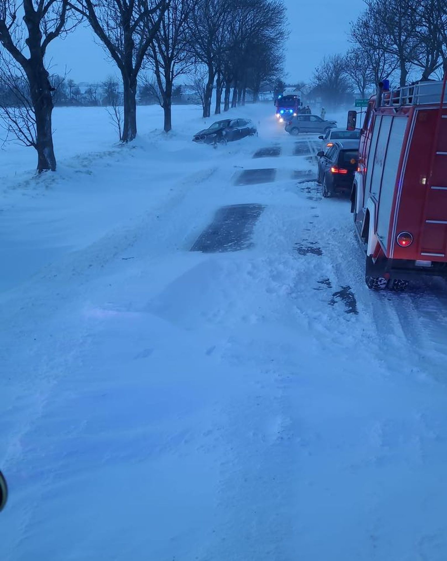 Zima nie odpuszcza. Bardzo trudne warunki na drogach naszego powiatu. Od rana strażacy interweniują w zdarzeniach powstałych na skutek opadów śniegu i podmuchów silnego wiatru.