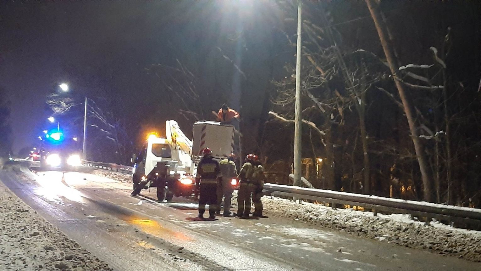 Jedno z takich drzew złamało się i oparło o linie wysokiego napięcia wzdłuż ulicy Wojska Polskiego pomiędzy komendą policji a wiaduktem kolejowym. Zdarzenie miało miejsce w poniedziałek, 19 grudnia kilkanaście minut po godzinie 20. Na miejscu interweniował zastęp straży pożarnej i patrol policji. Do usunięcia zagrożenia niezbędne było użycie podnośnika. Na czas prowadzonych działań droga została całkowicie zablokowana.