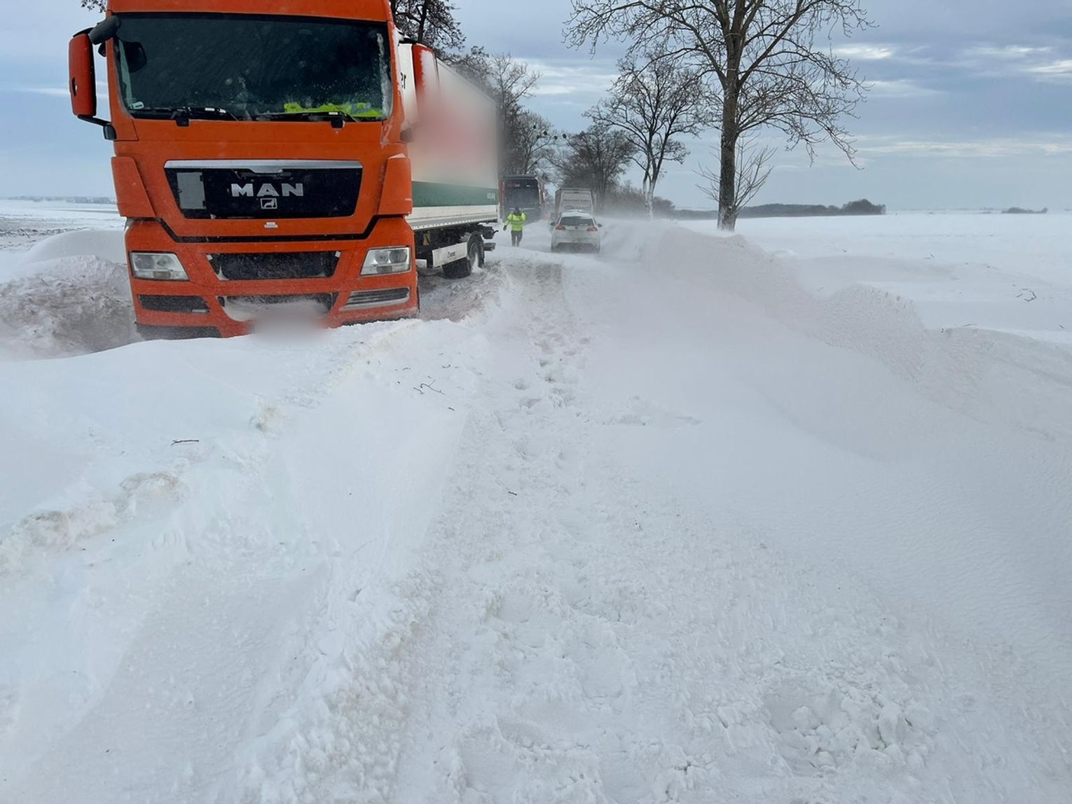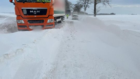 Silny wiatr zawiewający śnieg na jezdnię, tworzące się na drodze zaspy i kilkadziesiąt zasypanych pojazdów. Takie warunki panowały wczoraj na drodze krajowej nr 38 pomiędzy Pawłowiczkami a Ucieszkowem. Na miejscu pracowały wszystkie służby, w tym także policjanci, którzy pomagali osobom uwięzionym na tej trasie, a także zabezpieczali wjazdy na drogę, aby kolejne samochody nie utknęły w śniegu.