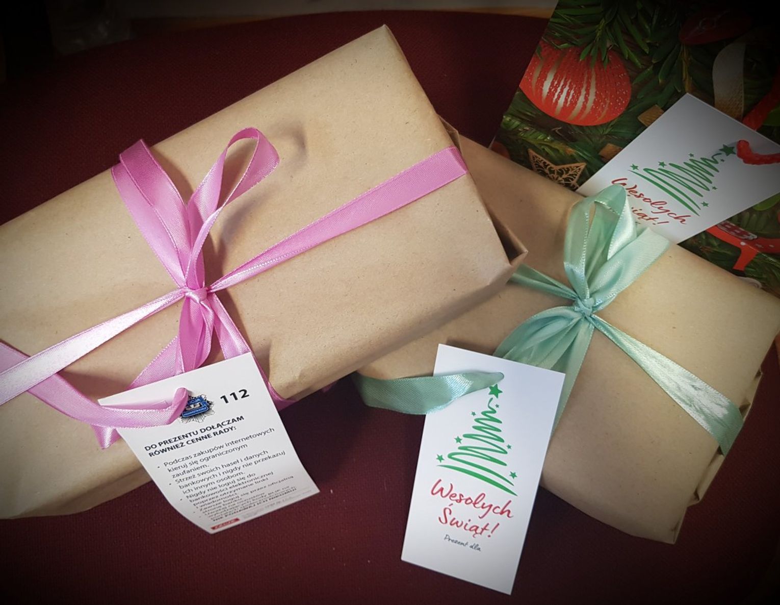 Okazją do kolejnych działań są nadchodzące święta. Tym razem policjanci przygotowali wspólnie z firmą Cewe specjalne zawieszki do prezentów, które dodatkowo zawierają ostrzeżenia przed działaniami oszustów. Rady skierowane są do seniorów oraz osób korzystających z internetu. Zawieszki te policjanci rozdawali osobom robiącym przedświąteczne zakupy w galerii handlowej. Do działań profilaktycznych włączyło się także kilka sklepów, w których funkcjonariusze zostawili zawieszki. Będą one dołączane do zakupów.