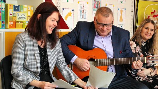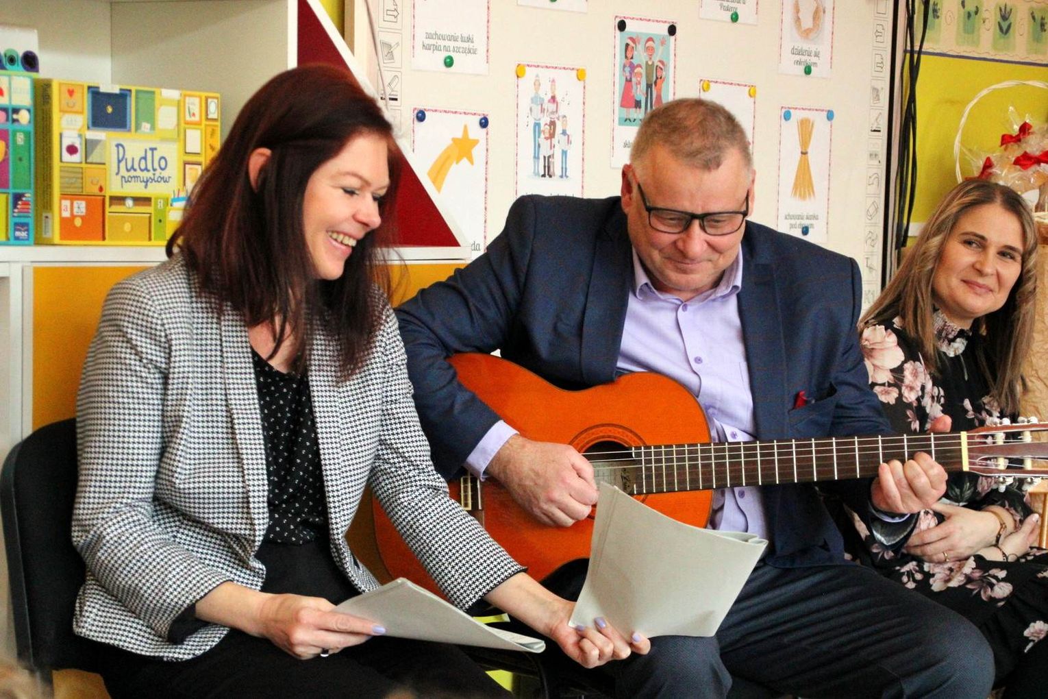 Kolędy razem z milusińskimi z Publicznego Przedszkola nr 22 zaśpiewał i zagrał na gitarze Wojciech Jagiełło. Mógł przy tym liczyć na pomoc skarbnik Joanny Hariasz.